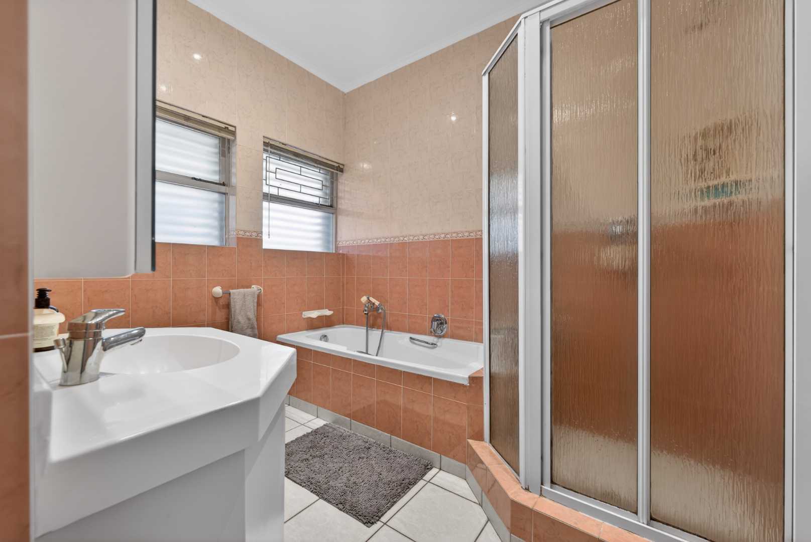 Downstairs, a large entertainment room with floor to ceiling multi-slide doors opens onto a wooden deck, sparkling pool, and a beautifully maintained, manicured garden—ideal for family gatherings. This level also includes a storeroom leading to a fully plumbed laundry or staff accommodation with a shower.