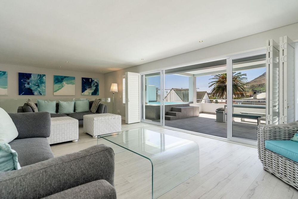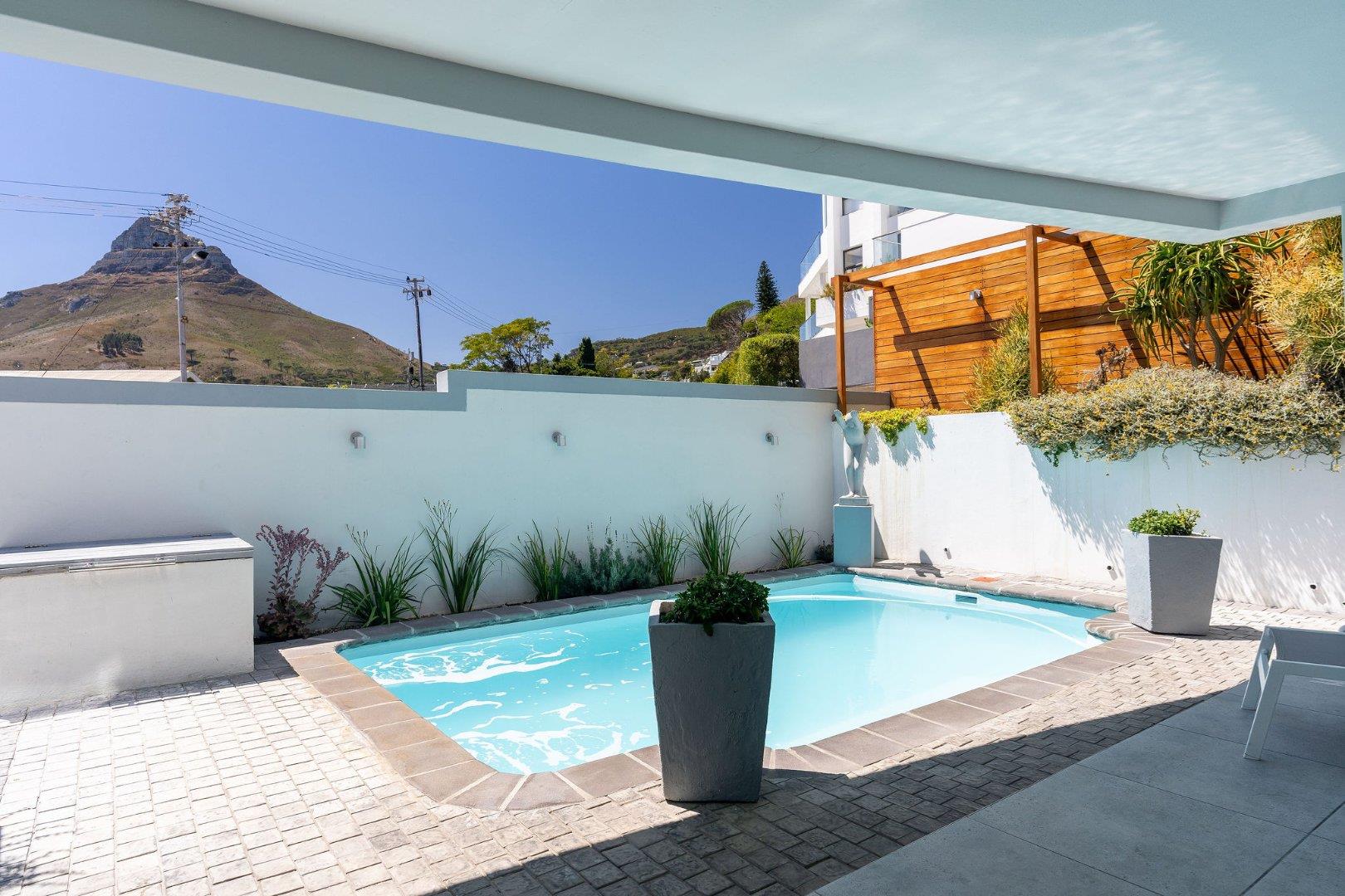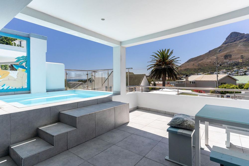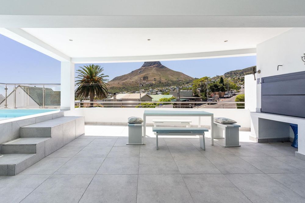 The first floor is designed for living and entertaining. An open-plan kitchen, lounge, and dining area flows onto a spacious veranda with a built-in braai, splash pool, and unobstructed views of Lion's Head and partial Atlantic Ocean views.