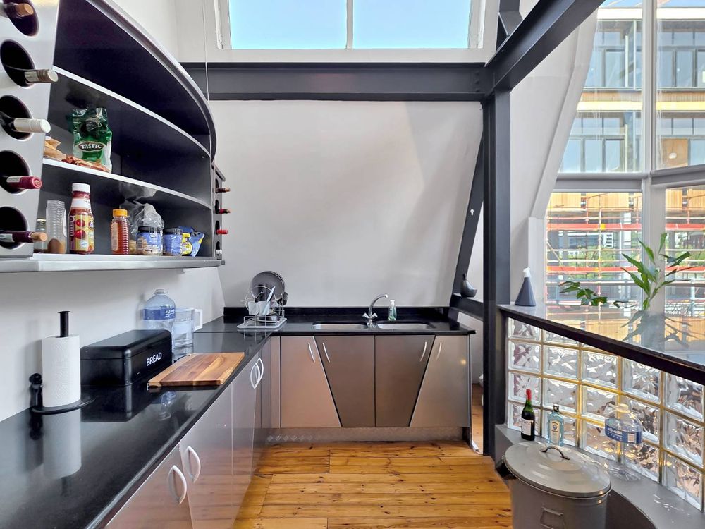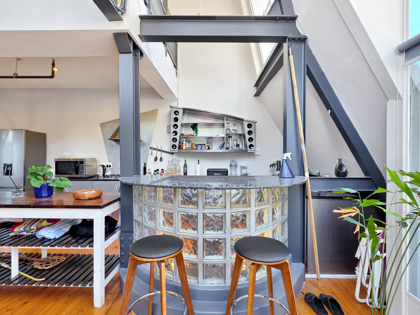 Step into this stylish, loft-style studio apartment offering a striking double-volume living space that feels both open and inviting. The ground level features a sleek kitchen flowing seamlessly into the living area, complemented by a convenient guest bathroom—perfect for effortless entertaining.