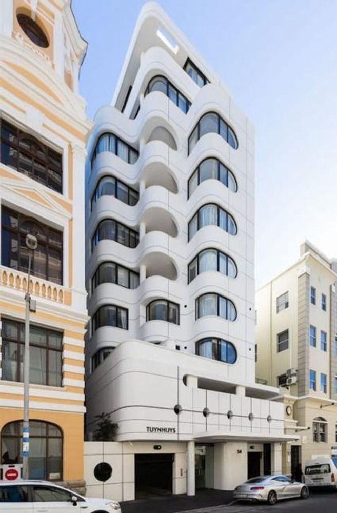 Designed by renowned Cape Town architect Robert Silke, this iconic new build offers a futuristic take on traditional Cape architecture. Nestled adjacent to the Company Gardens, the apartment's location provides a serene atmosphere despite being in the heart of the city center, sharing a street with the esteemed Cape Judiciary High Court. Enjoy the tranquility of the area, frequented by advocates in flowing gowns, while being just minutes away from Clifton Beach and the vibrant V&A Waterfront.