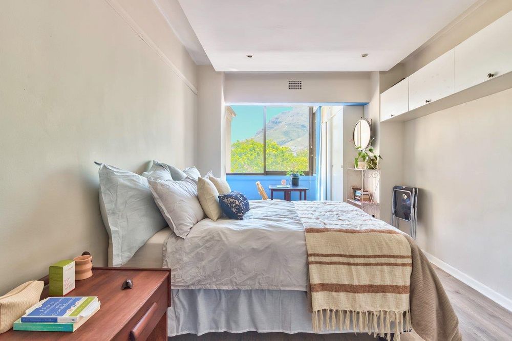 Open-plan bedroom and living area, with expansive views over the Company Gardens and Table Mountain