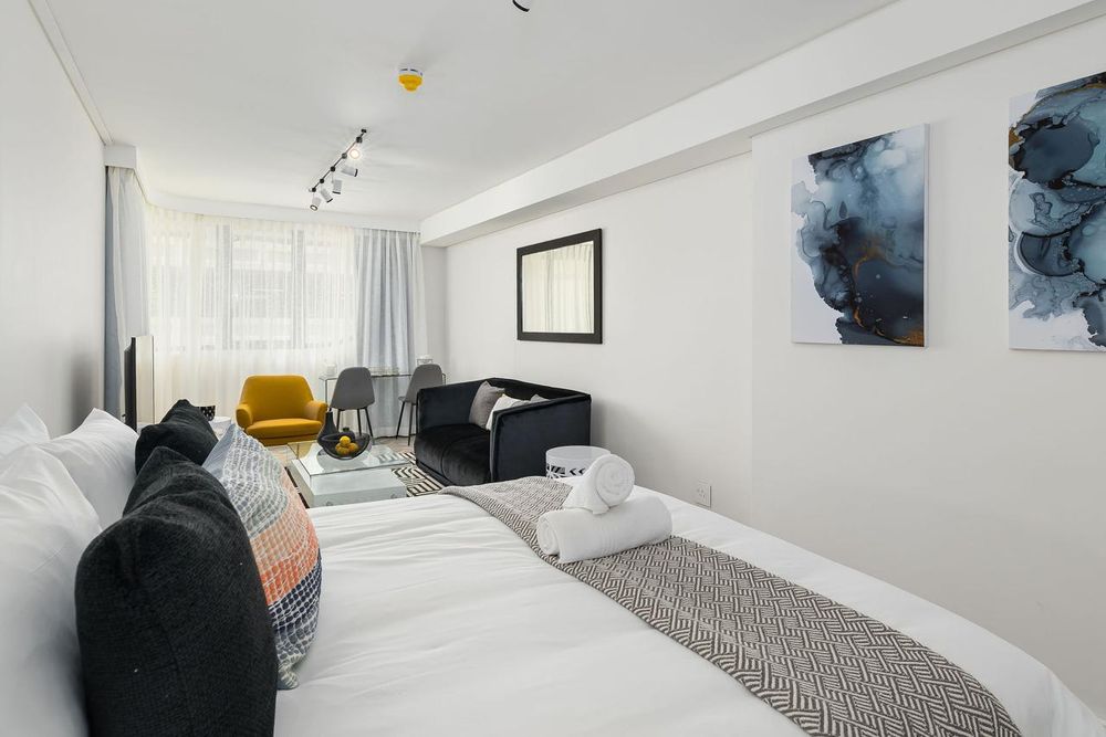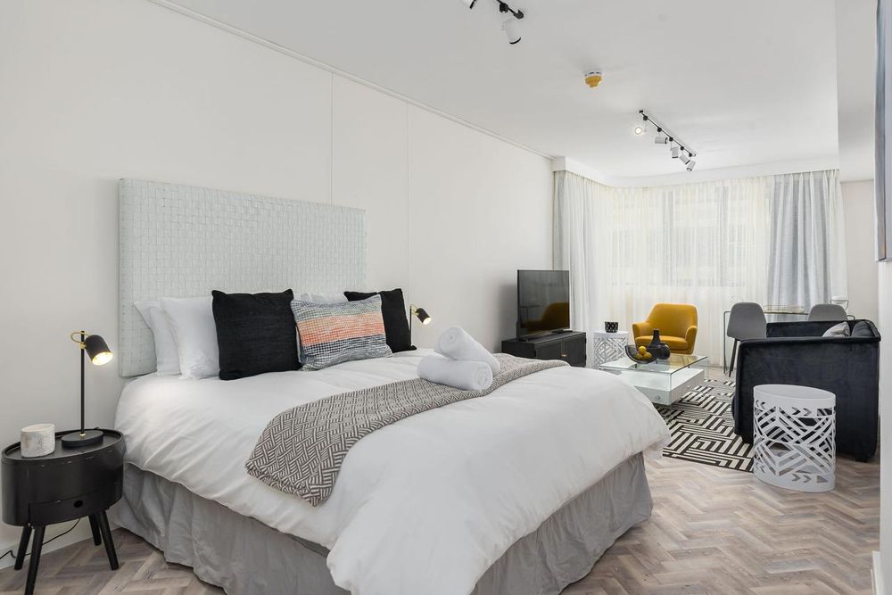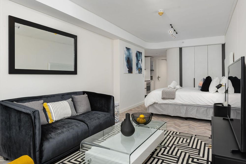The open-plan design allows for plenty of natural light, enhancing the contemporary feel of the space. The modern kitchen comes fully equipped with a washer-dryer and a Nespresso machine, ensuring convenience and ease. You'll enjoy full amenities throughout your stay, and with the Company Gardens, art galleries, Labia Theatre, restaurants, coffee shops, pubs, shops, and nightclubs all within easy walking distance, there’s always something to explore.
