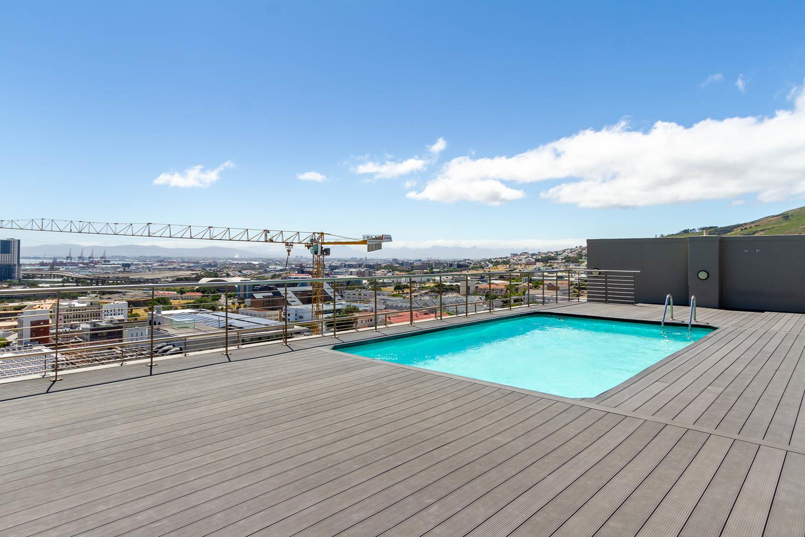 The building offers 24 hours security, roof top communal swimming pool and gym with stunning Table Mountain, harbour and the sea beyond views.