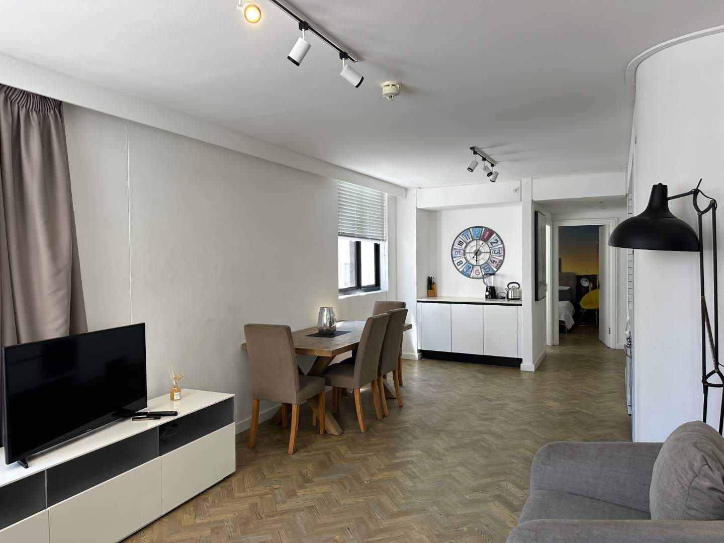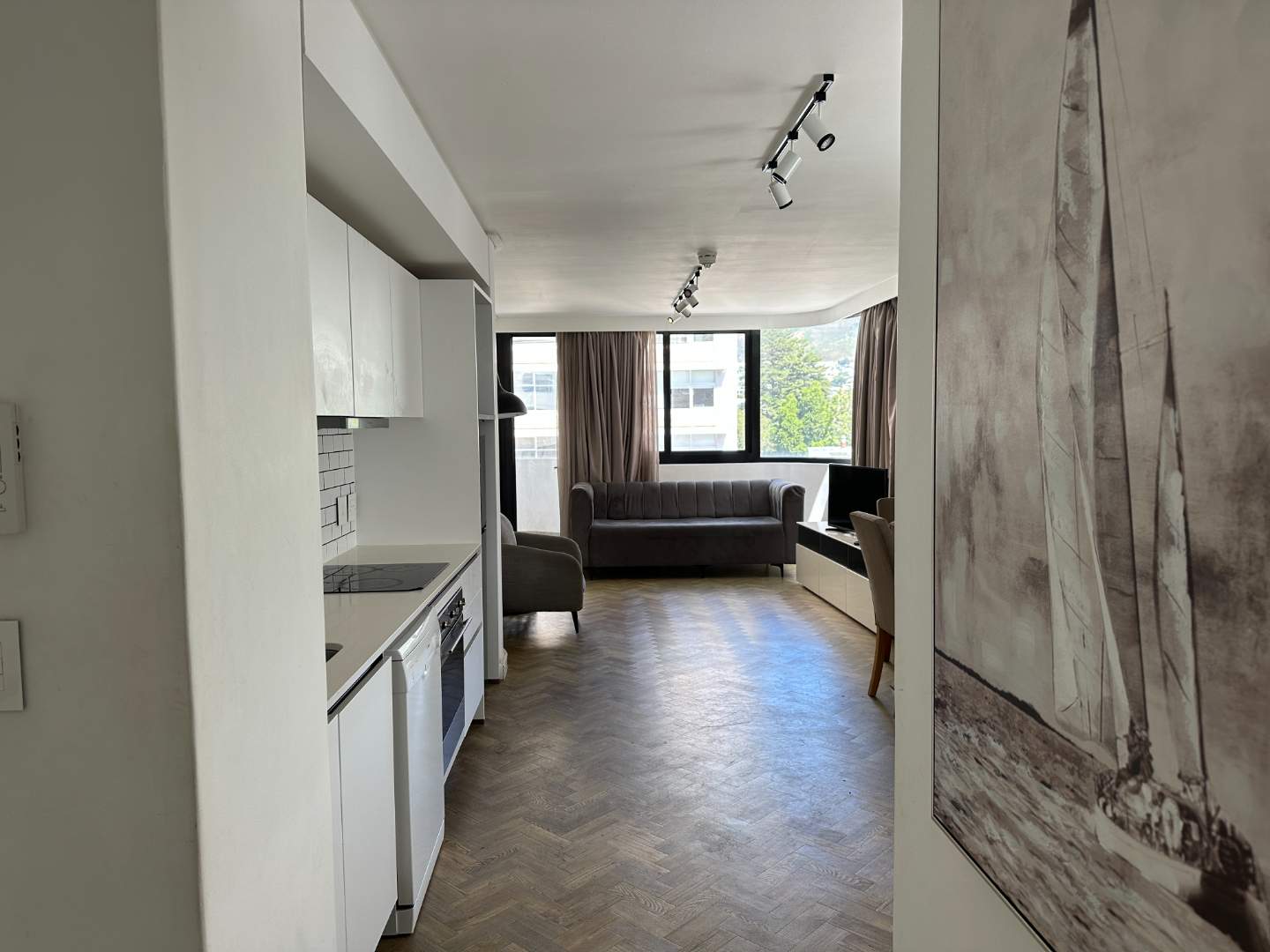 Open plan living area, also with access to the balcony. Furnished, as per the pics