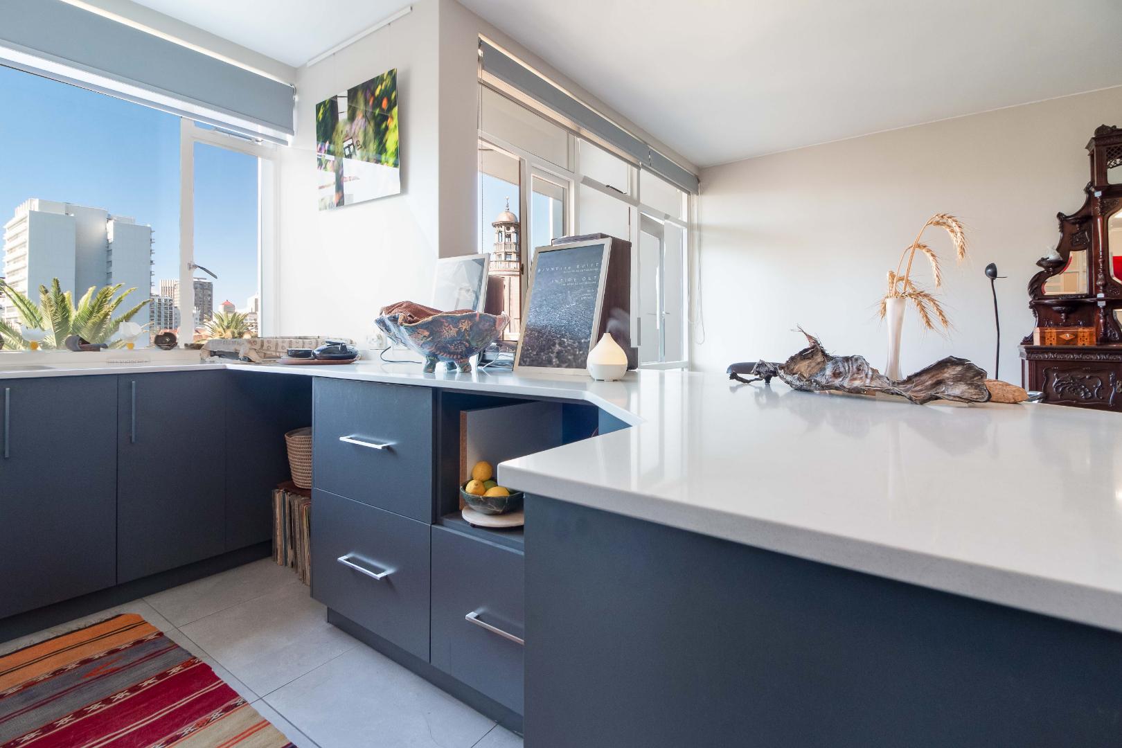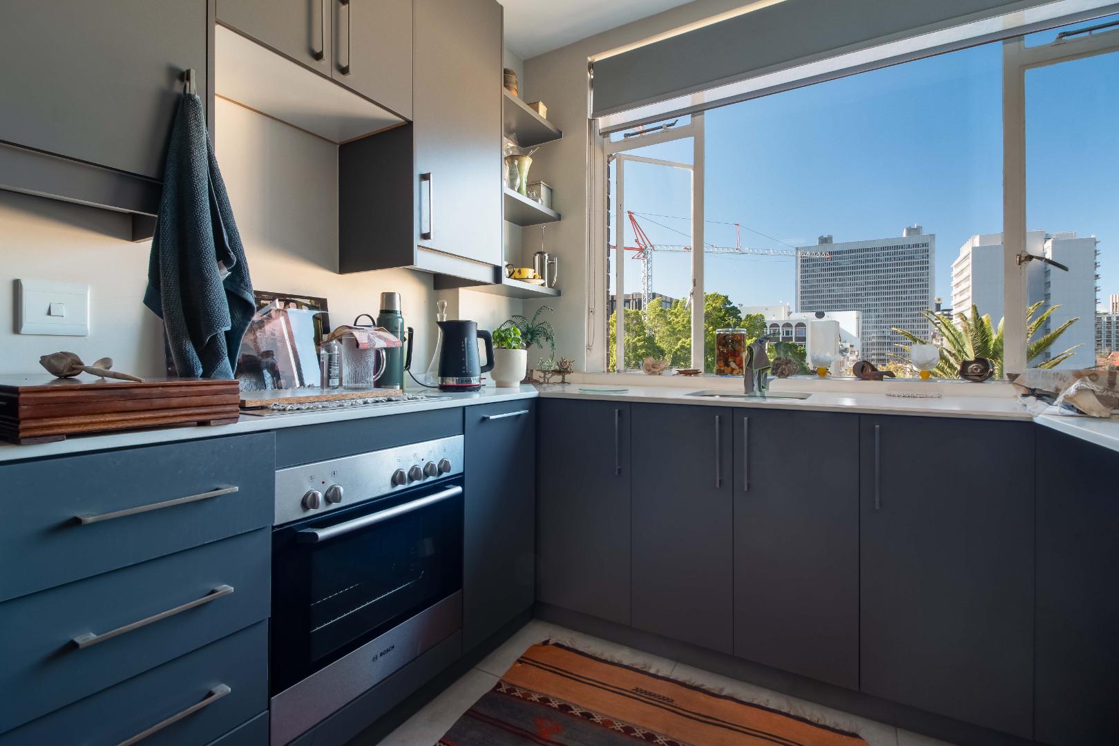 The apartment has a secure parking bay within the block. Close to all amenities - walk to bustling Kloof street with eateries, bars, and the Lifestyle Centre. The Labia Theatre is a stone's throw away