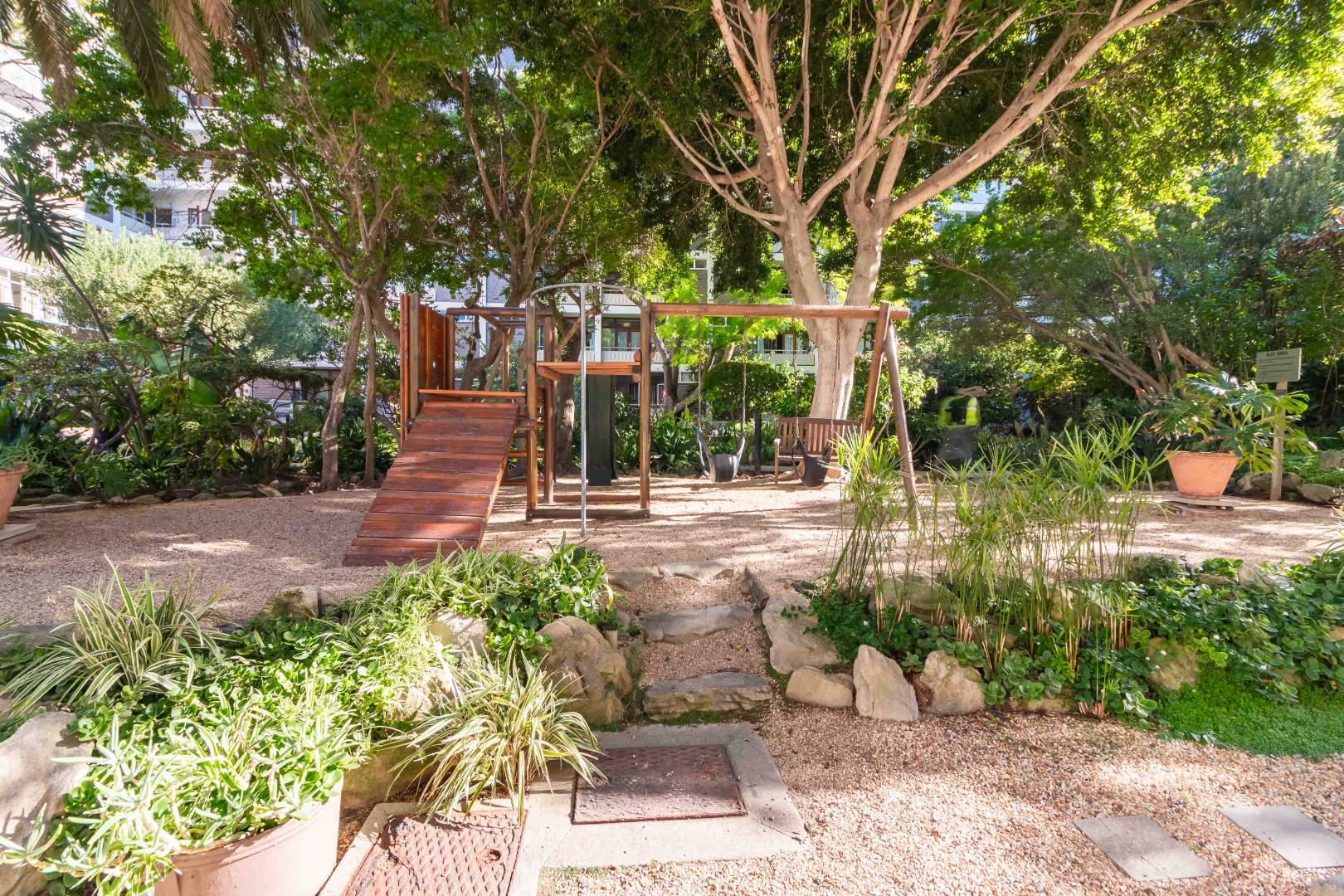 It is like a true city Oasis- walk the Gardens and experience a Koi pond, a wooden play park for the little ones, and a large sparkling pool