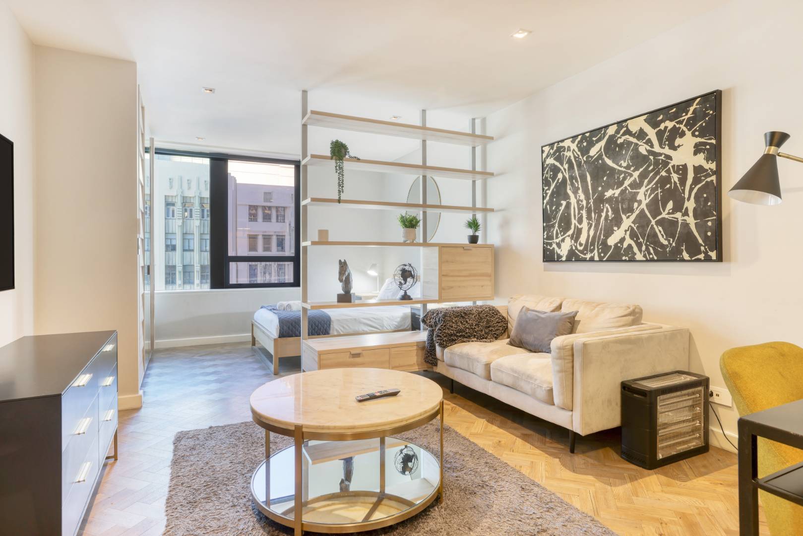 This studio in Foreshore Place puts you in the heart of Cape Town’s CBD, just steps from iconic landmarks like the Artscape Theatre, Civic Centre, and CTICC. With clean architectural lines and a central location, it's perfect for professionals, travellers, or investors looking to tap into the short-term rental market.