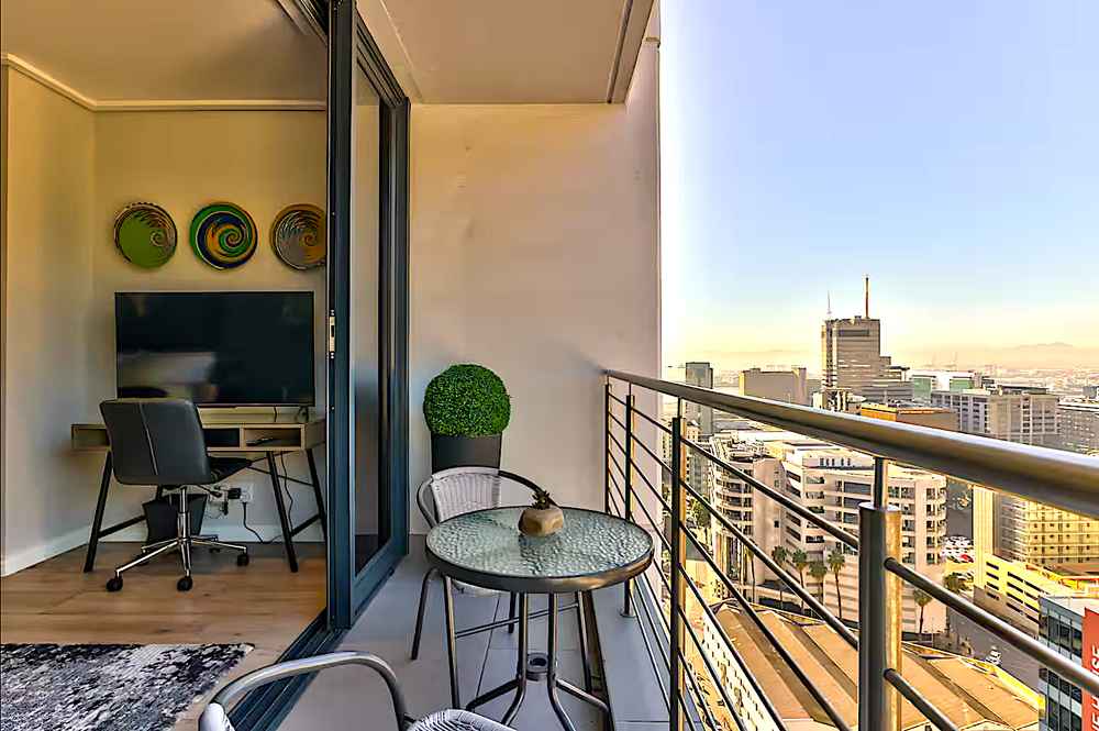 Step outside onto your 20th-floor private balcony and enjoy captivating views of the Cape Town skyline, Table Mountain, and the harbour — a serene spot to unwind with a morning coffee or evening cocktail.
