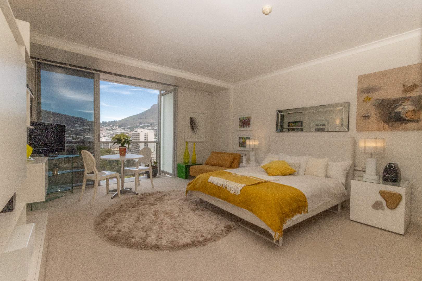 - Iconic views: Direct sweeping panoramas of Table Mountain and the leafy expanse of Company’s Garden — a rare combination from a city-centre residence.
