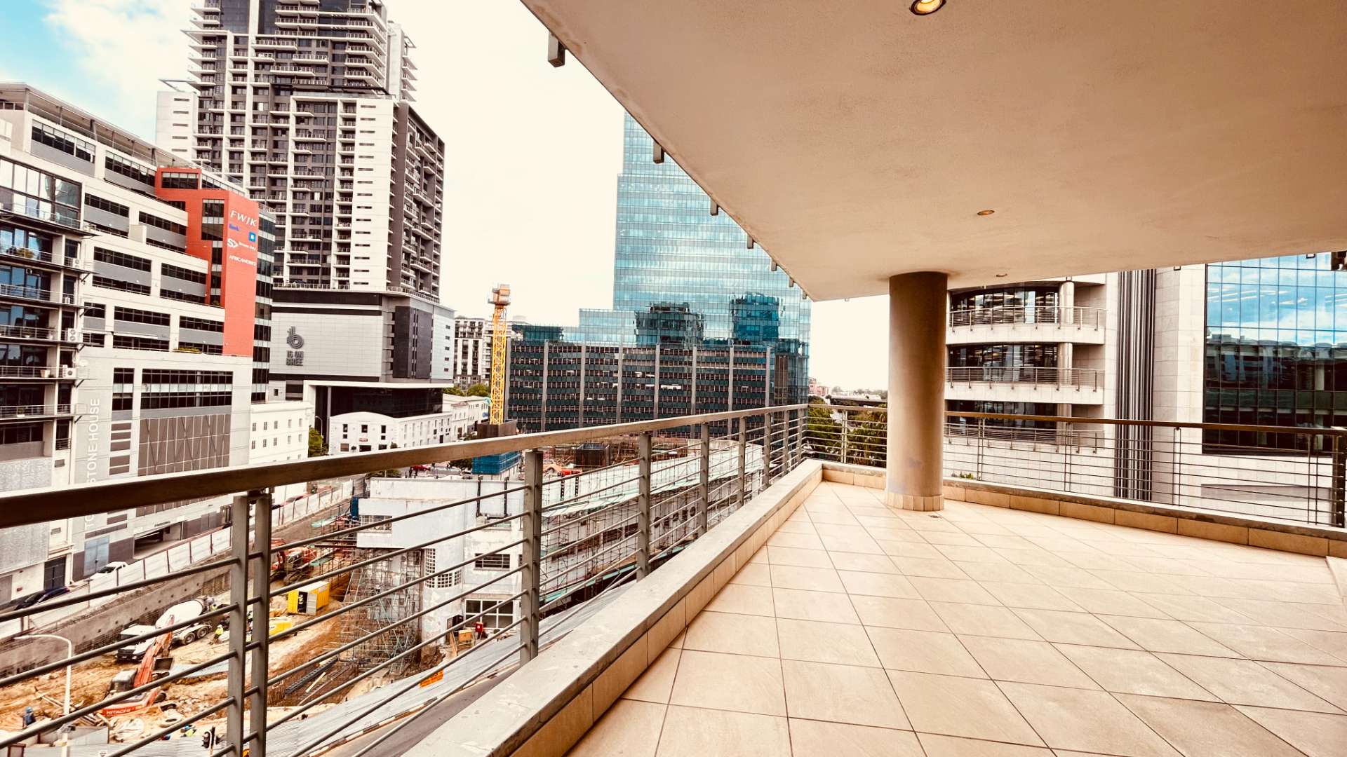The lounge opens onto an exceptionally spacious balcony — a rare luxury in the CBD — providing the perfect setting for morning coffees, sunset cocktails, or relaxed outdoor living. The main bedroom also enjoys direct access to this private outdoor haven, enhancing the sense of space and light.