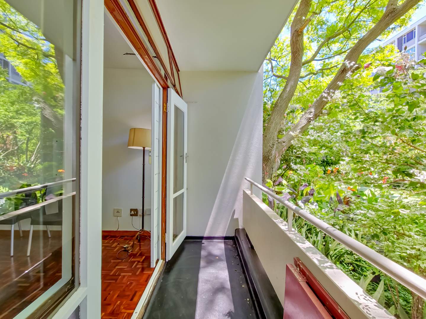 Step inside to find elegant parquet flooring that exudes warmth and sophistication throughout the apartment. The kitchen and bathroom have been tastefully renovated, featuring modern finishes that cater to your contemporary lifestyle needs. A balcony overlooking trees adds to the charm of the apartment. A divider separating the bedroom and the living area, ensures privacy. Build in cupboards.