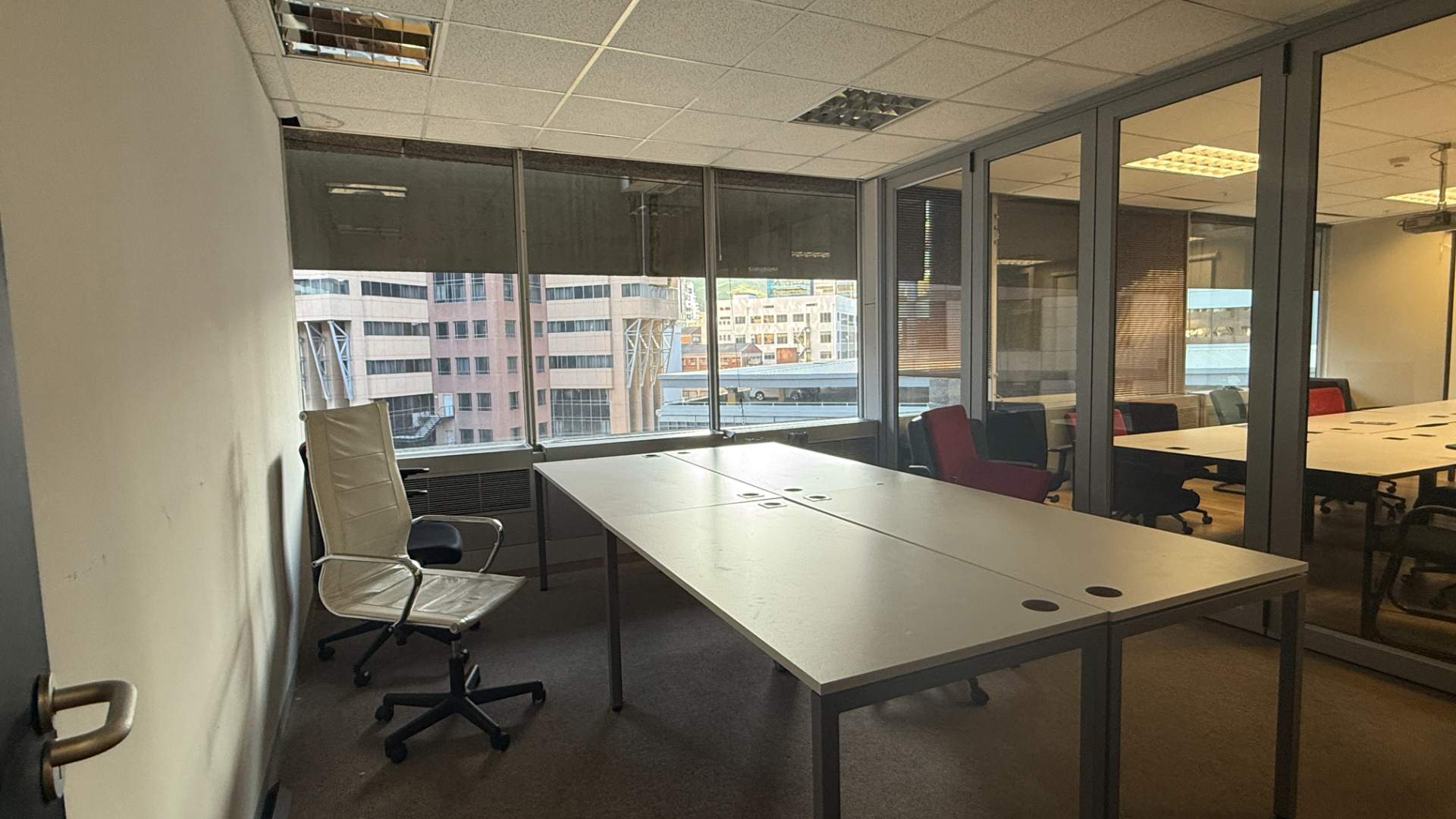 Located on the 4th floor of a well-maintained commercial building in the heart of Cape Town’s Central Business District, this 318m2 office offers a professional environment with panoramic views of the city. Ideal for growing teams or established businesses, the unit features a fully equipped kitchen, multiple boardrooms, and a flexible layout suitable for various workspace configurations. The building offers efficient lift access, 24-hour security, and no load shedding, ensuring uninterrupted business operations. Secure parking is available on-site at R1,650 per bay (ex VAT).