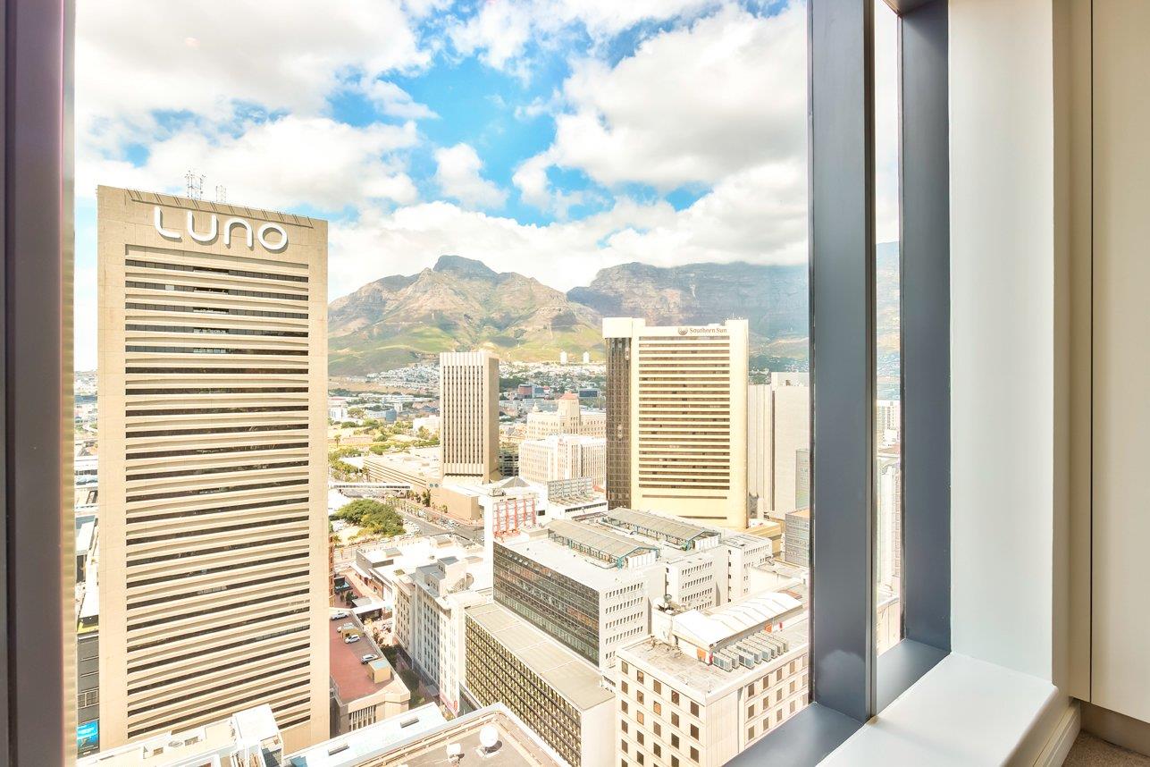 - Floor-to-ceiling glass doors leading to a private balcony with magnificent Table Mountain views