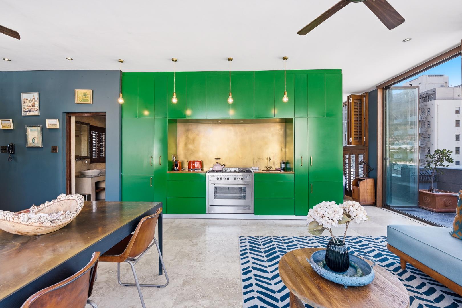 This unique penthouse occupies the entire top floor of a striking Art Deco building and offers uninterrupted 360° views of the City skyline, Lion’s Head, and Table Mountain . These features significantly enhances Airbnb demand and nightly rates.