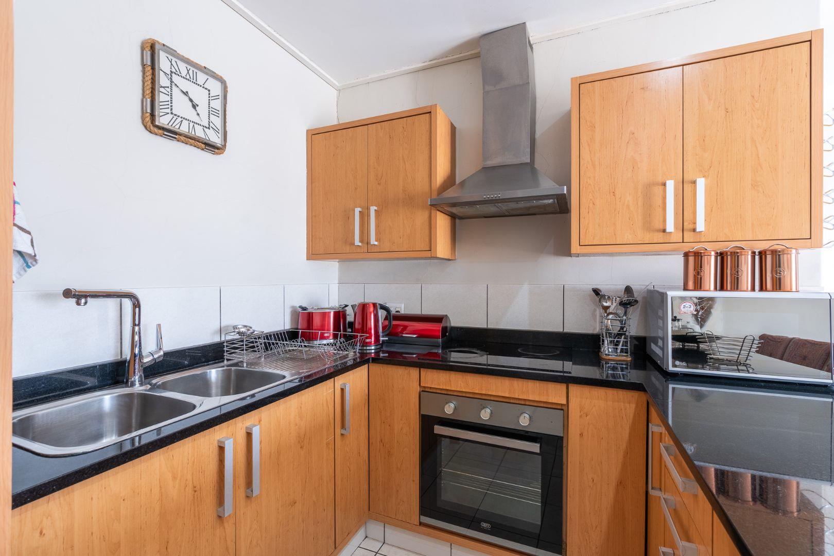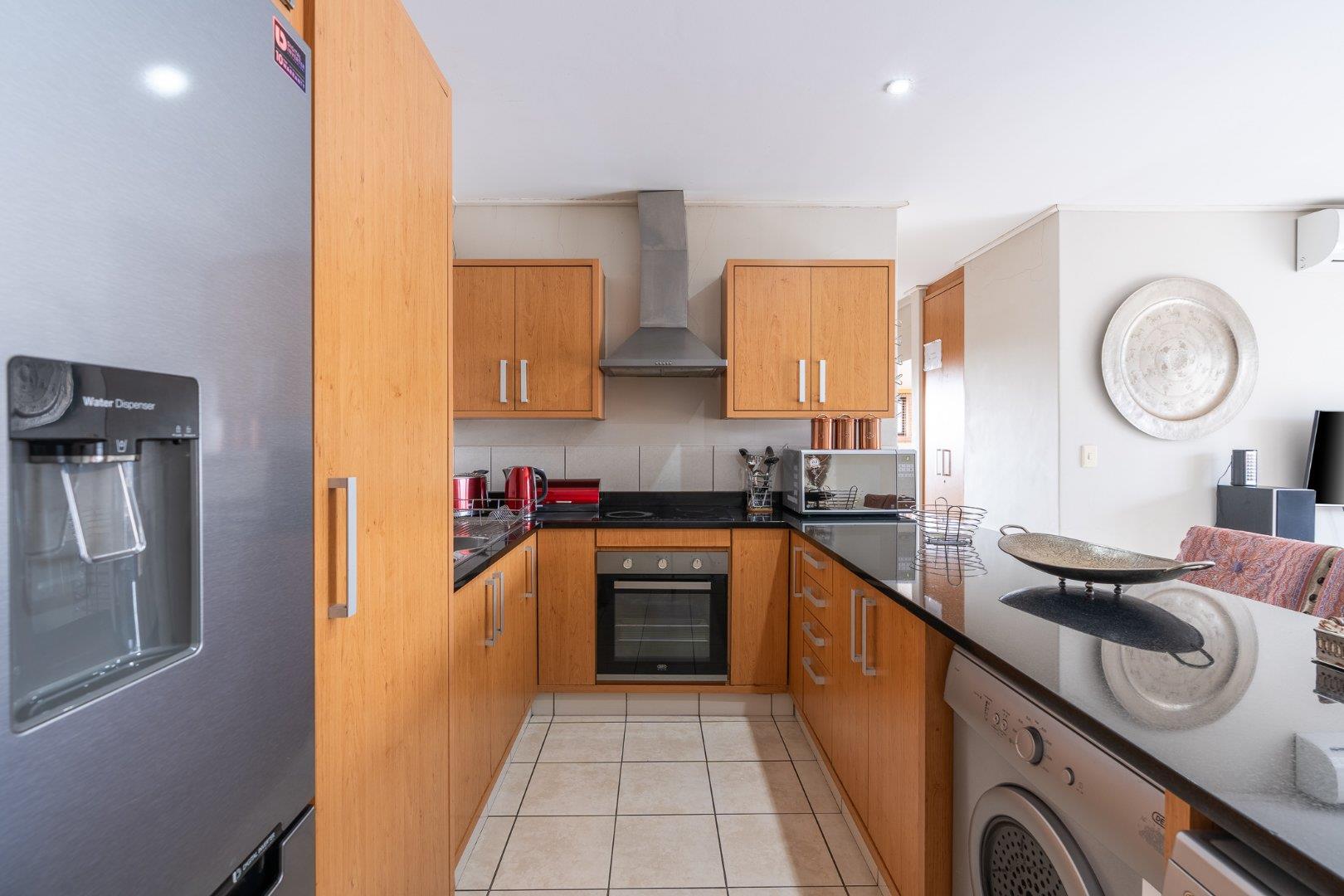 This stylish apartment in the sought-after Manhattan complex in Century City offers tiled open-plan living, seamlessly connecting the kitchen and lounge area, which opens onto a spacious balcony—ideal for entertaining or relaxing. The kitchen is fitted with built-in cupboards, a built-in oven, glass hob, and extractor fan, with space for both a washing machine and tumble dryer. The lounge features an air conditioner for added comfort.