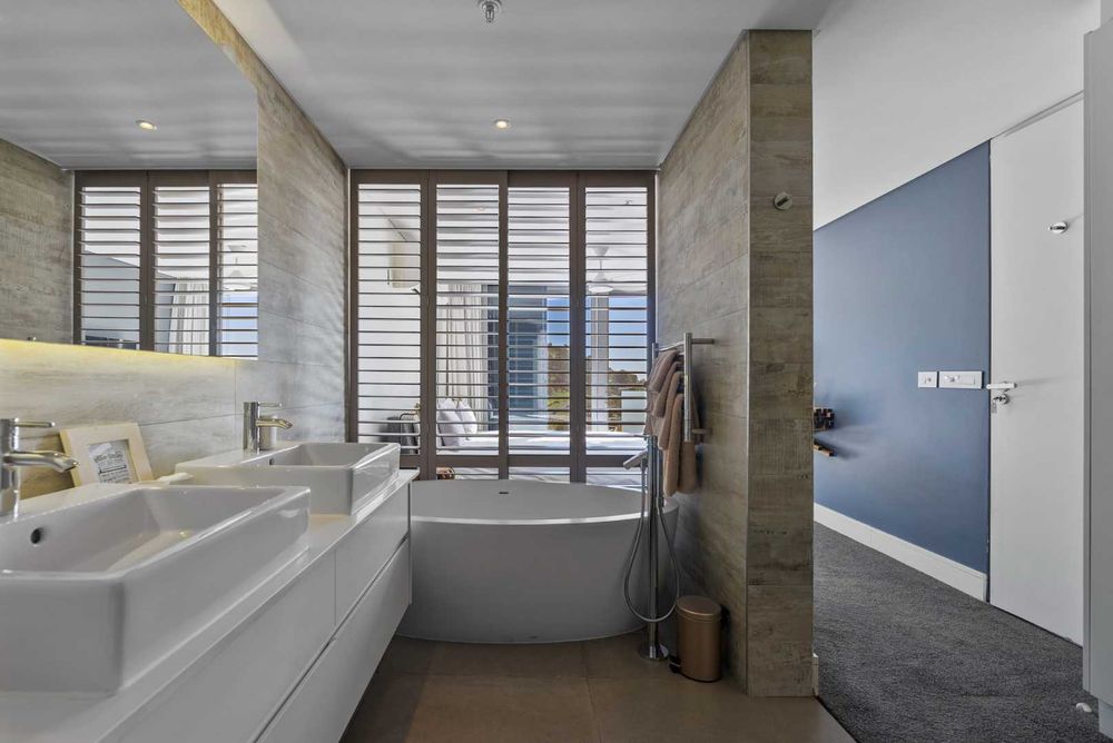 - Main Suite: Includes a spacious en-suite with double basins, a walk-in shower, and a freestanding bath.
