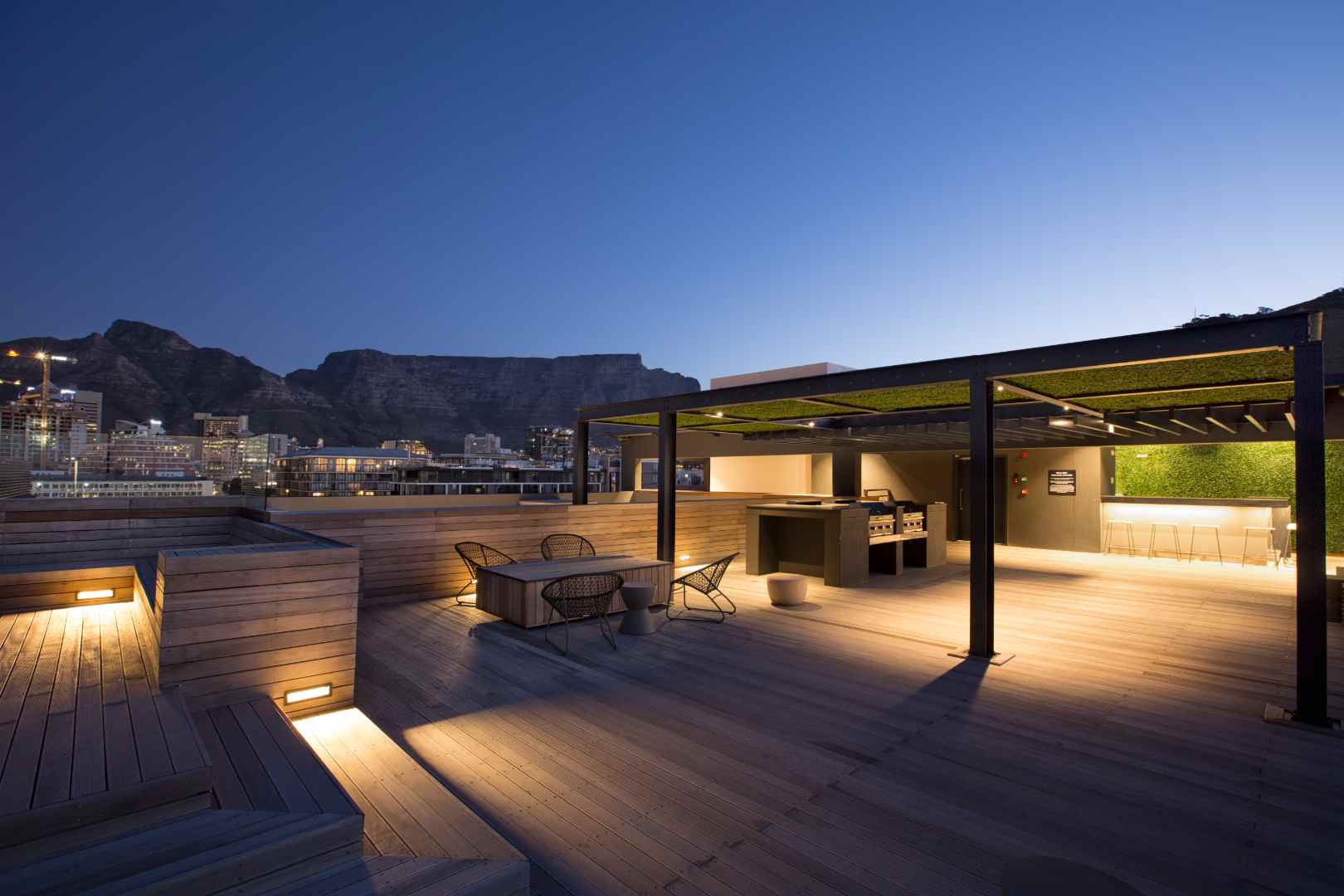 Residents enjoy exclusive access to a rooftop terrace, complete with a swimming pool, private bar, and BBQ facilities all set against panoramic views of Table Mountain, Lion’s Head, Signal Hill, and the Atlantic Ocean.
