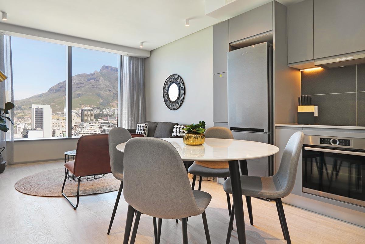 Discover the perfect blend of urban living and scenic beauty in this magnificent furnished apartment located at the intersection of De Waterkant, the city center, and the vibrant Bo-Kaap neighborhood. This beautifully appointed studio offers the ambiance of a one-bedroom apartment, with the living and sleeping areas cleverly separated by a stylish cupboard, creating an open yet private atmosphere.