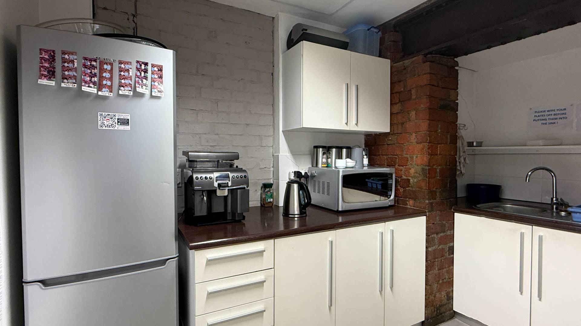 -A well-equipped bar and kitchen area, ideal for team collaboration and informal gatherings