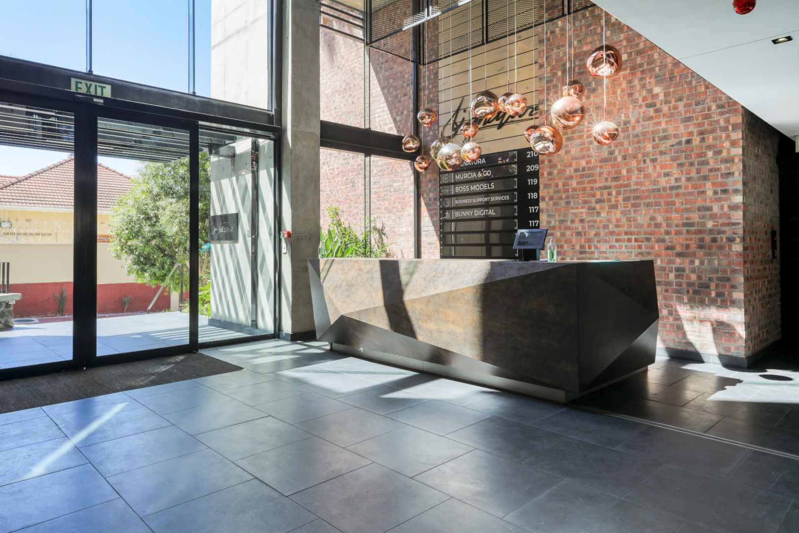 - Floor-to-ceiling windows flooding the space with natural light