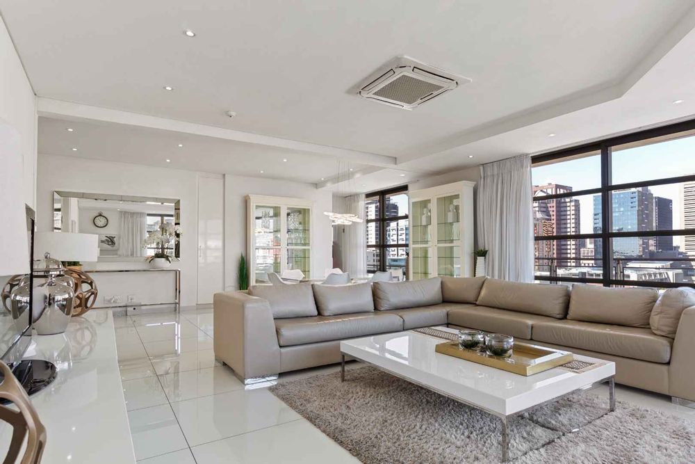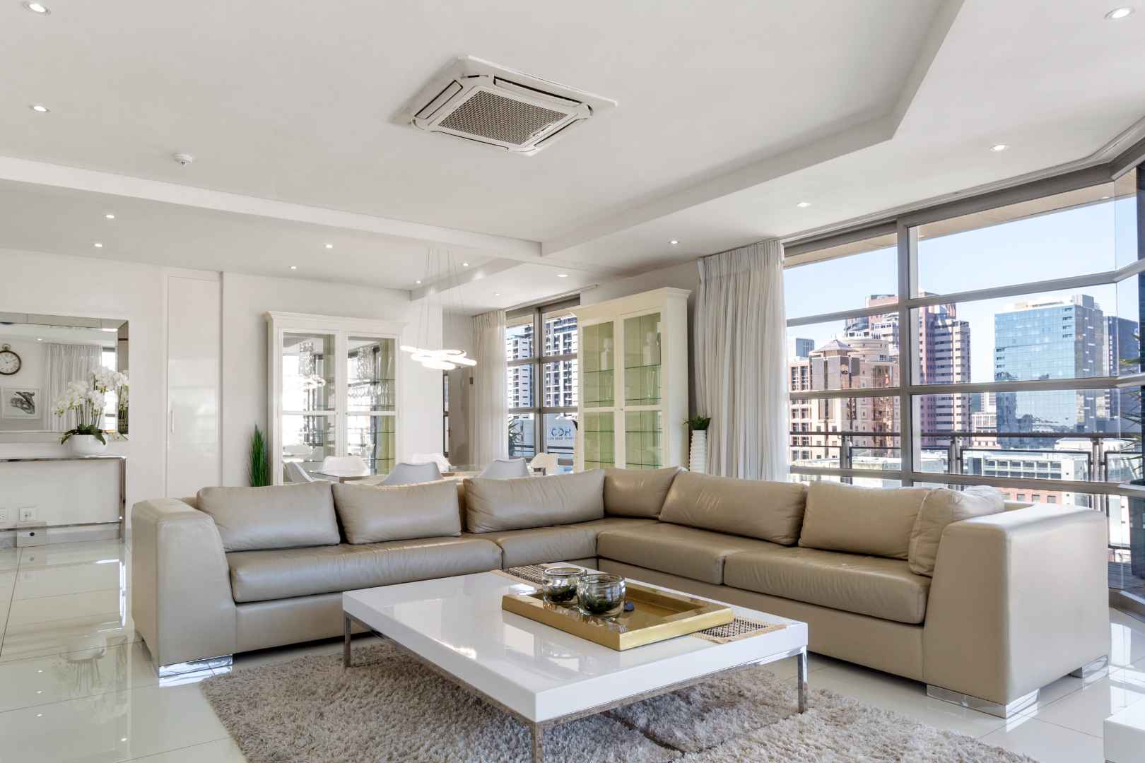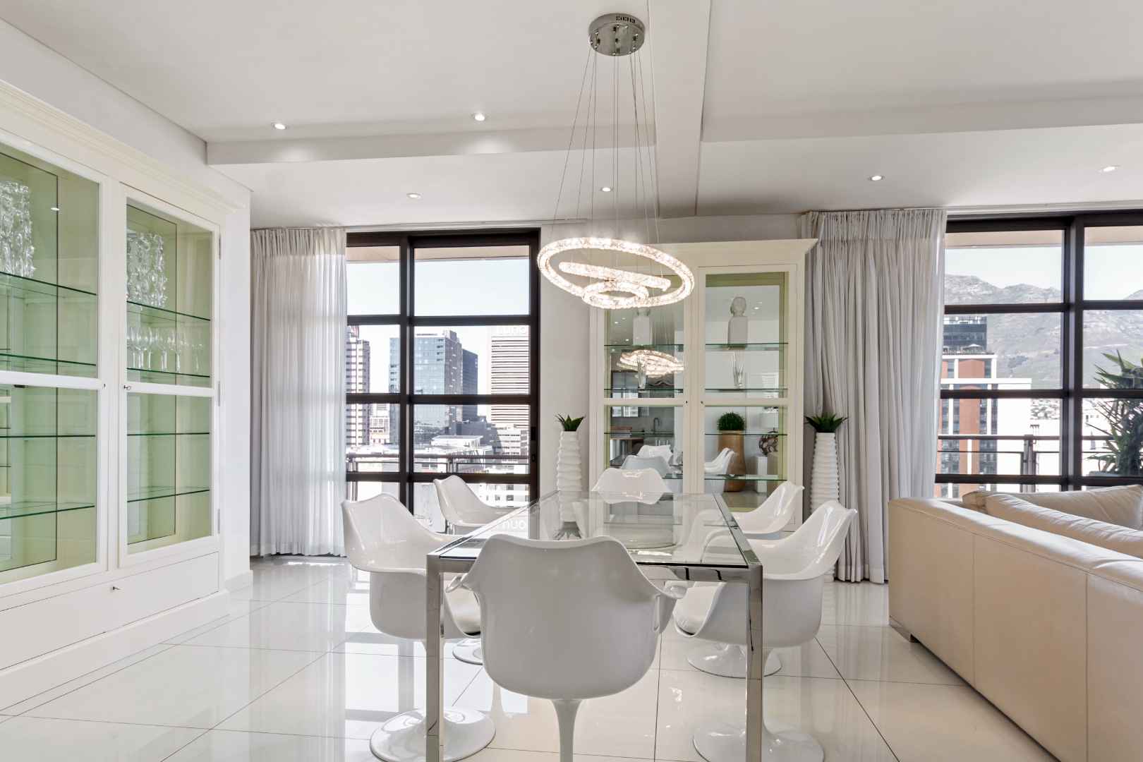 Discover the epitome of urban living in this exquisite single-level, top-floor apartment at Soho on Strand. Immerse yourself in breathtaking panoramic views of the cityscape, Table Mountain, and Lions Head from the expansive wrap-around balcony.