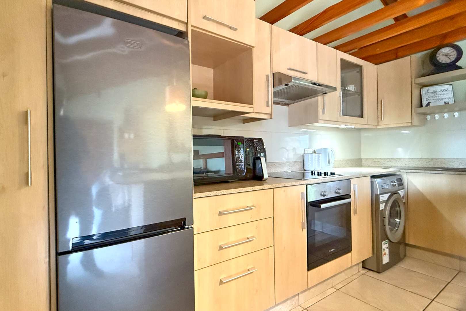 In addition to the main house, there is a spacious flatlet that offers versatility and comfort. It includes a large bedroom with laminate flooring and built-in cupboards. The open-plan tiled lounge extends to a generous balcony, offering breathtaking views of Table Mountain and Flamingo Vlei.