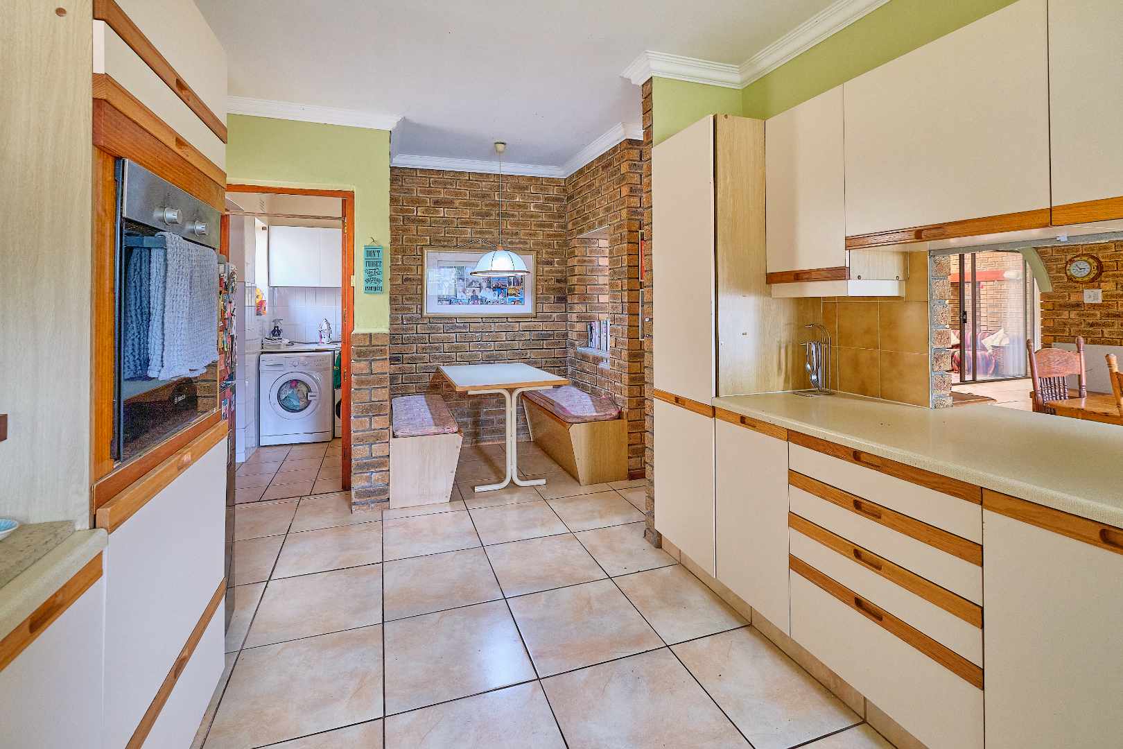 The property features four bedrooms, providing ample space for the entire family. The main bedroom boasts laminate flooring and includes a dressing area that leads into a large, full bathroom. The three single bedrooms are carpeted, with two offering built-in cupboards, ensuring plenty of storage space.