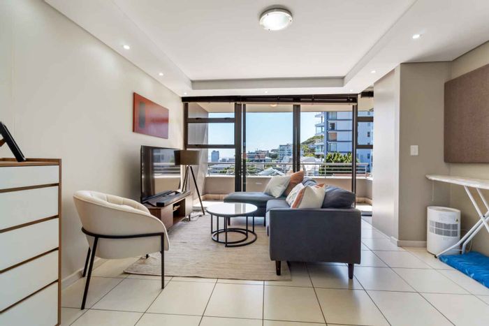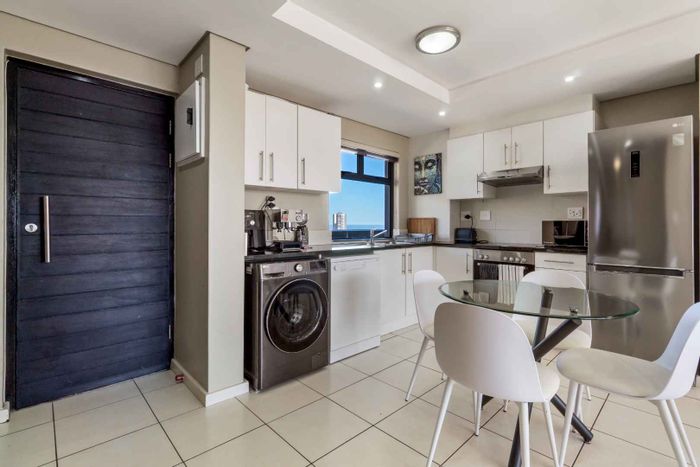 Sun-filled coastal lifestyle steps from the beachfront, with panoramic Signal Hill and Lion's Head views. Spacious three-bedroom apartment—massive primary with ensuite—and secure parking included.