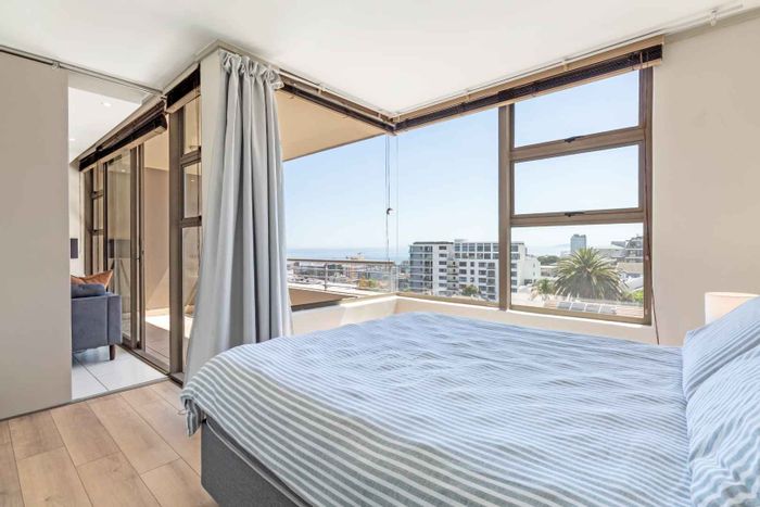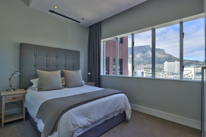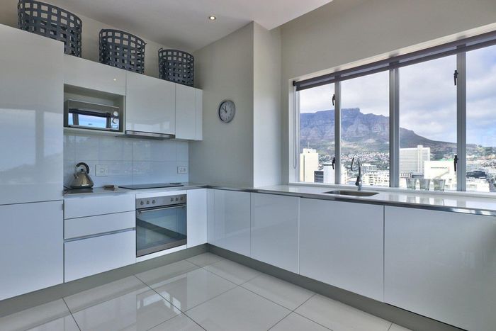 Embrace cosmopolitan Cape Town living with 180-degree Table Mountain, Lion's Head and harbour views; hotel-style pool, gym and concierge. Includes two bedrooms, two bathrooms and two parking bays.