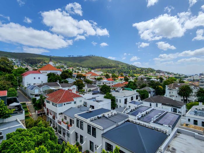 Elevated city living with daily Table Mountain and city views in Tamboerskloof, walking distance to Blue Café. Quality kitchen, pool, three bedrooms, two bathrooms and single garage.