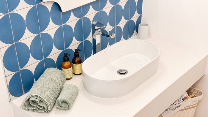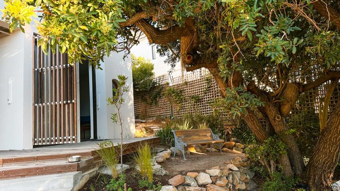 Coastal lifestyle in Bakoven — morning coffee under a pepper tree, mountain trails nearby and a 20-minute beach walk; airy furnished studio with sunny kitchen, modern appliances and one bath.