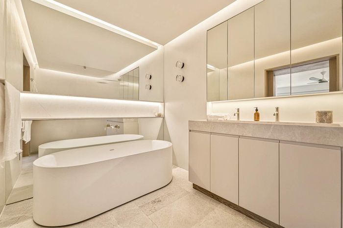 Wake up to ocean views and Clifton beach walks in Bantry Bay — open-plan living flowing to garden, pool and patio. Two ensuite bedrooms, 3.5 baths, single garage and off-street parking.
