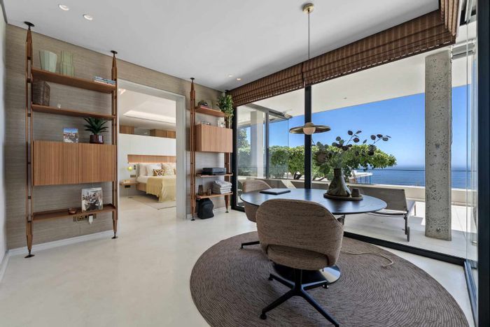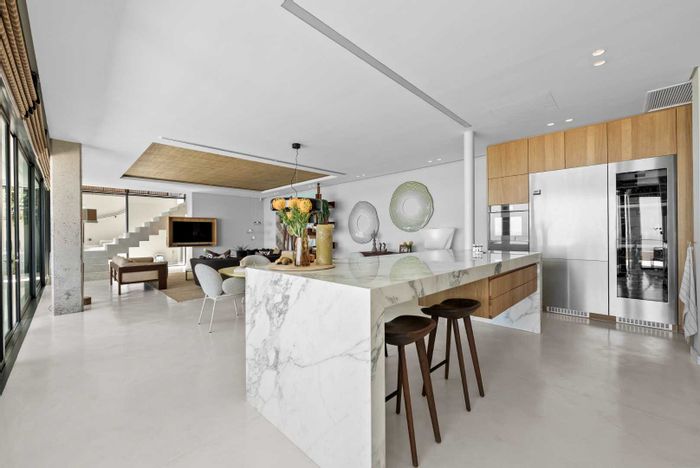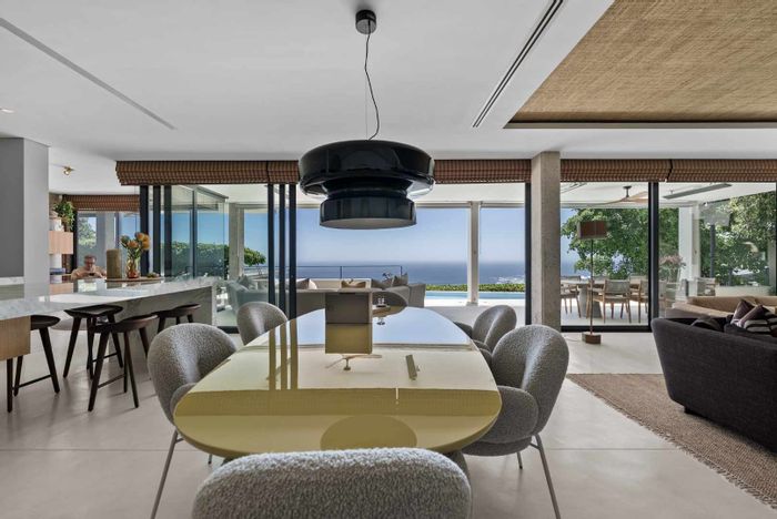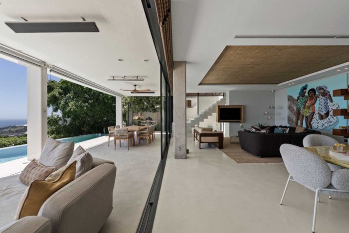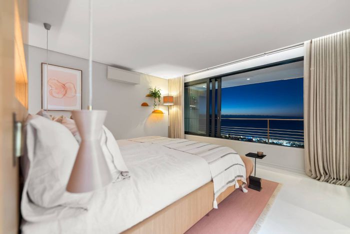Sophisticated city living with Table Mountain views and a sun-soaked patio perfect for entertaining; dramatic double-volume living with floor-to-ceiling black-steel windows. Four beds, four baths, secure parking.