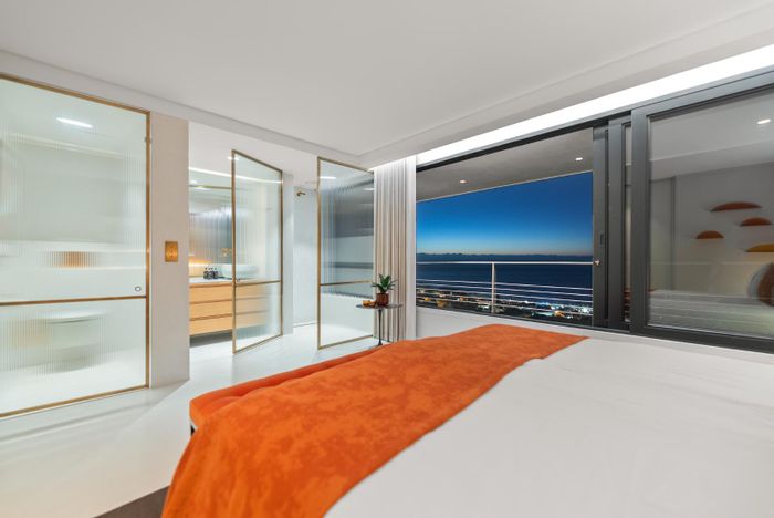 City-edge living minutes from the V&A Waterfront in Foreshore — turn-key Airbnb with mountain-view balconies, pool and gym access, plus one-bedroom, en-suite and secure parking.