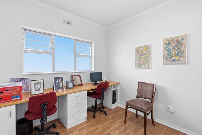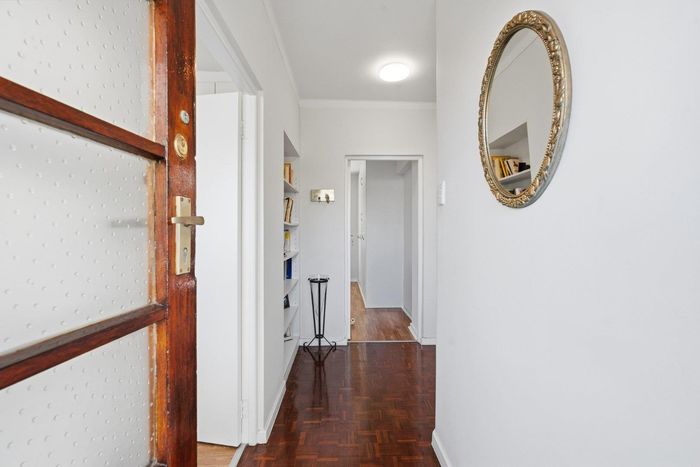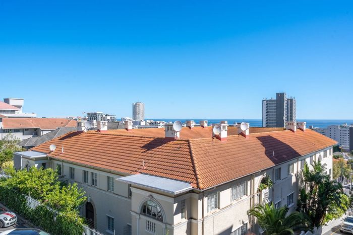 Enjoy elevated Vredehoek living with sweeping harbour and City Bowl views from a private balcony; sunlit open-plan living, parquet floors, two bedrooms and lock-up garage included.