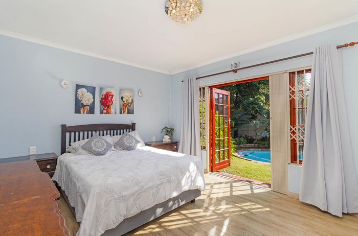 Private family retreat in Constantia's leafy enclave with sweeping mountain views, expansive gardens and poolside braai room — five bedrooms, five-and-a-half bathrooms and double garage.