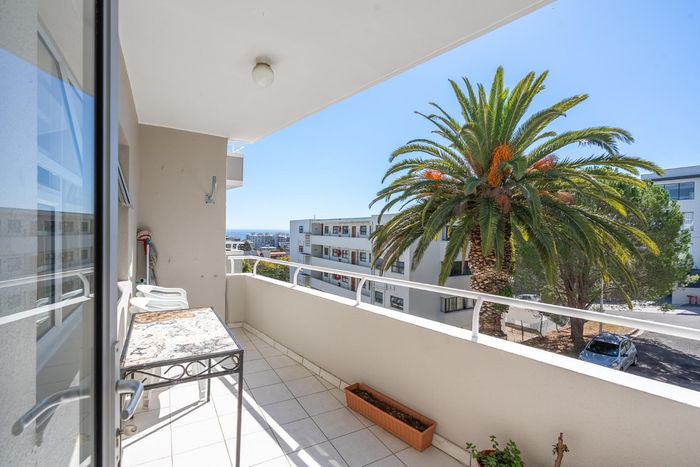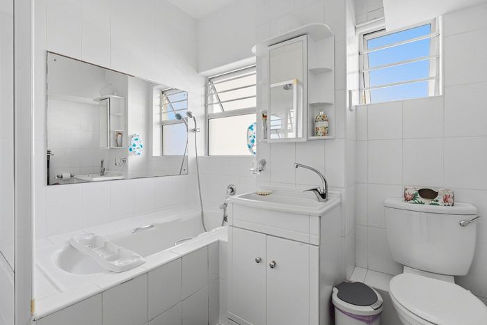 North-facing, sun-drenched Sea Point apartment perfect for coastal city living, expansive balcony with sweeping Atlantic and city views, pet-friendly, includes two bedrooms, 1.5 baths and lock-up garage.