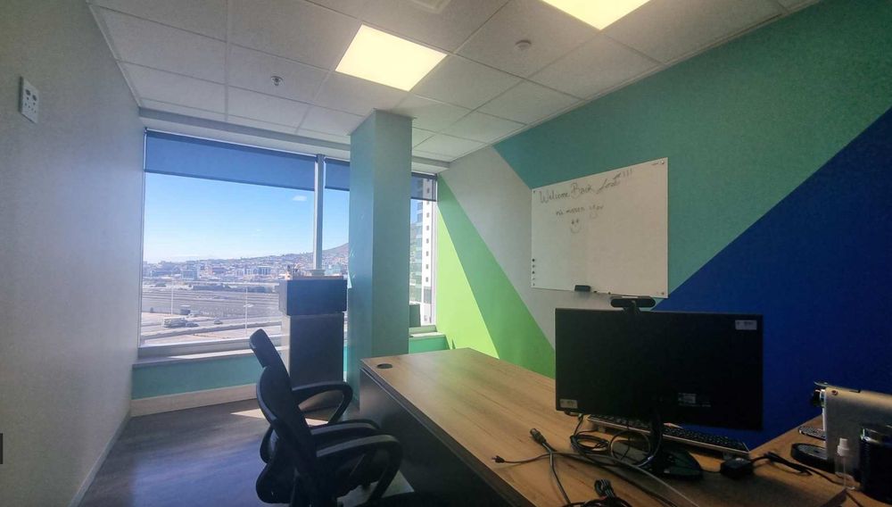 The office enjoys panoramic 360-degree views of the city, Table Mountain, and the harbour, with private balconies that enhance the overall working environment. The layout is highly versatile, featuring a large open-plan area идеально suited for a call centre or operational team, complemented by multiple glass-partitioned private offices, boardrooms, and fully equipped training rooms. A spacious canteen and multiple breakaway areas further support staff comfort and productivity.