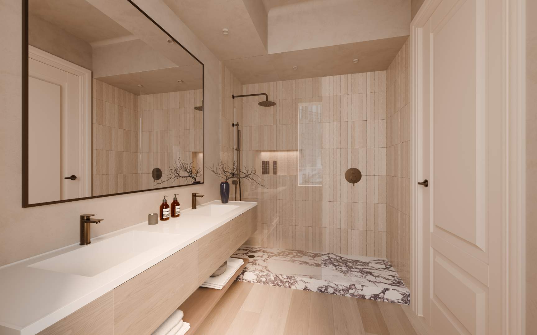 Begin with what it could become. Renders are of a beautifully reimagined Fresnaye apartment with soft lines, immaculate finishes, and a space that can feel uniquely yours.