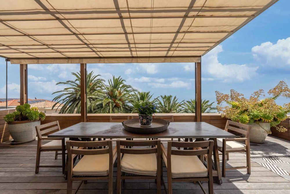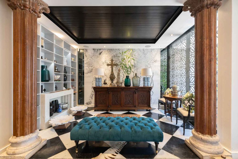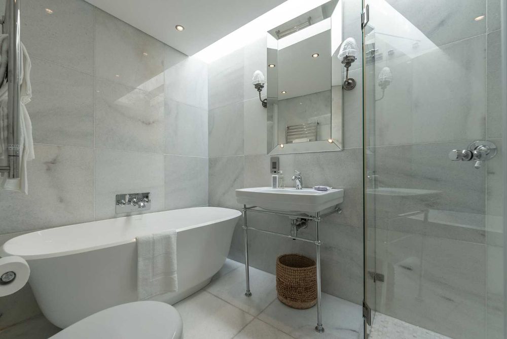 The contemporary kitchen, is complemented with sleek marble countertops, a dedicated coffee station, stylish cabinetry, and high-end Smeg appliances, including a gas hob and electric oven. For wine enthusiasts, the integrated EuroCave wine fridge and dedicated wine cellar offer the perfect setting for curating and storing your collection.