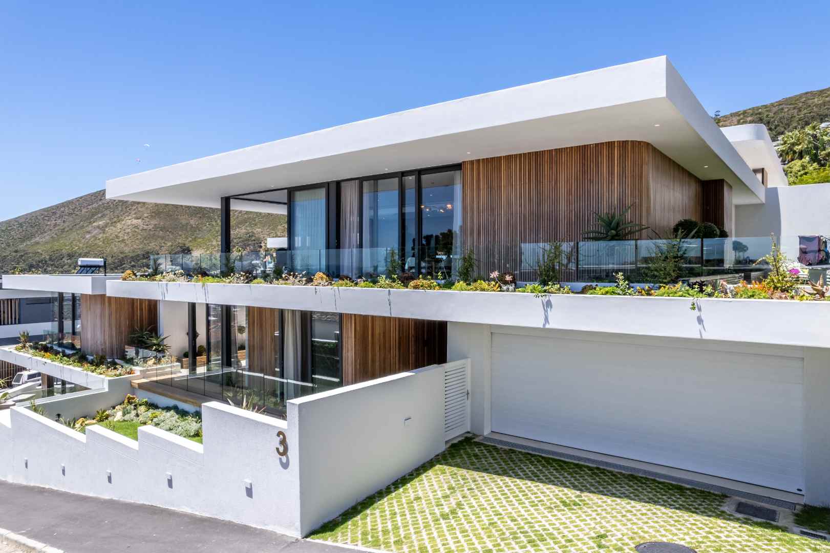 Situated in a secure and tranquil setting, this home prioritizes privacy and safety, offering a peaceful retreat amidst the vibrant city life. For outdoor enthusiasts, the beautifully landscaped garden is a standout feature. Meticulously designed to maximize the stunning ocean vistas, it serves as an ideal space for entertaining or relaxing in a serene environment. Whether hosting a summer soirée or enjoying a quiet evening with loved ones, this outdoor area is sure to impress. The property also includes a double garage and two designated parking spaces in front, providing ample room for vehicles and guests.