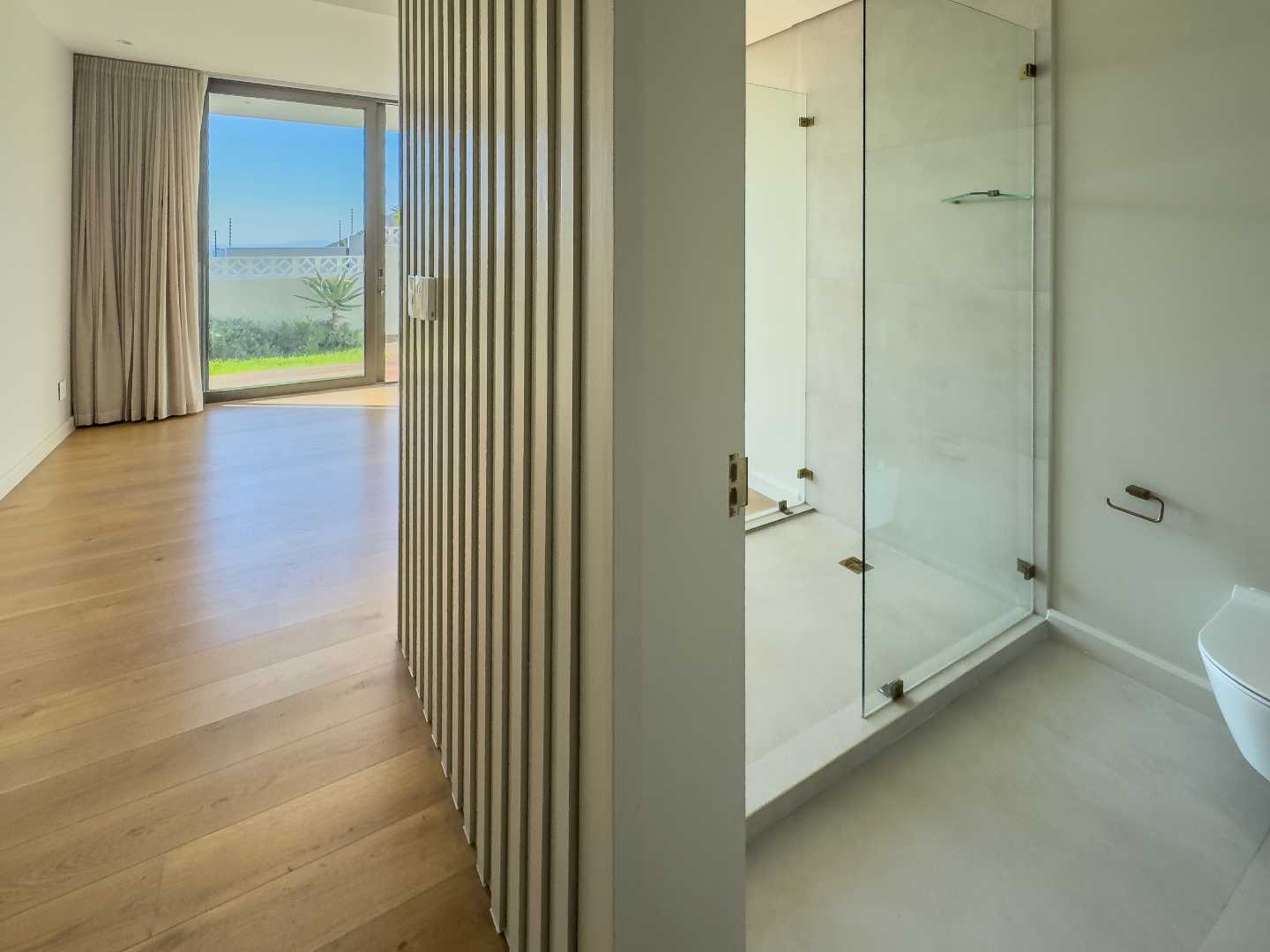 Inside, discover a light-filled haven where design and function harmonize seamlessly. The open-concept layout blends a sleek, modern kitchen and separate scullery with an expansive dining area and a sophisticated lounge — ideal for effortless living and stylish entertaining. Every element of the interior reflects meticulous attention to detail, from the Hansgrohe fittings and 15mm oak-engineered floors to Italian porcelain tiles and high-end wood finishes and appliances.