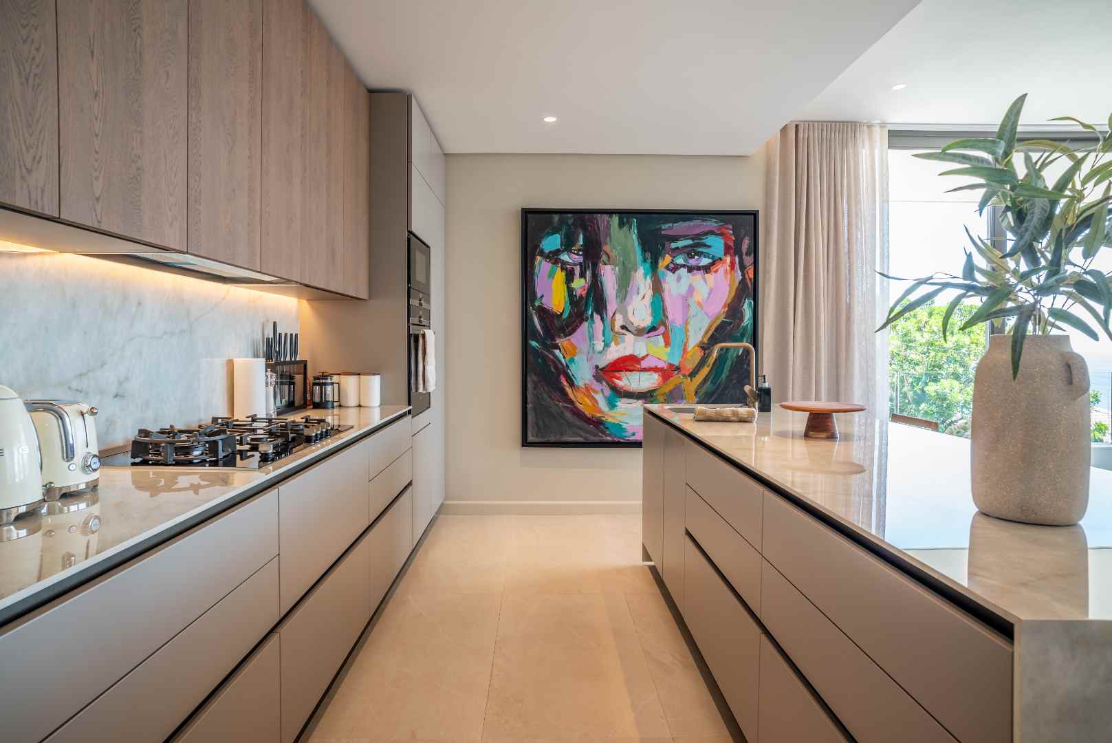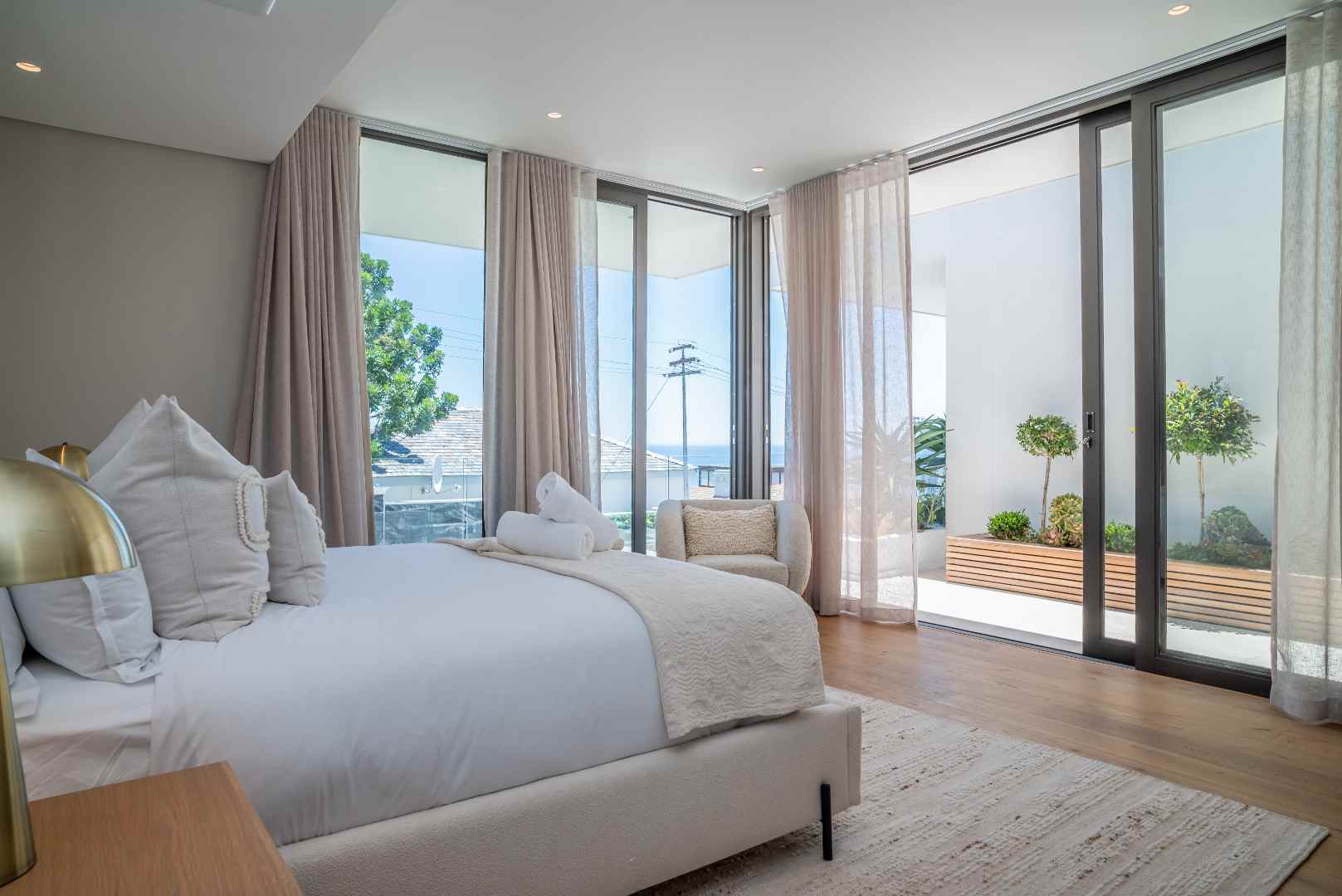 Situated in a secure and tranquil setting, this home prioritizes privacy and safety, offering a peaceful retreat amidst the vibrant city life. For outdoor enthusiasts, the beautifully landscaped garden is a standout feature. Meticulously designed to maximize the stunning ocean vistas, it serves as an ideal space for entertaining or relaxing in a serene environment. Whether hosting a summer soirée or enjoying a quiet evening with loved ones, this outdoor area is sure to impress. The property also includes a double garage and two designated parking spaces in front, providing ample room for vehicles and guests.