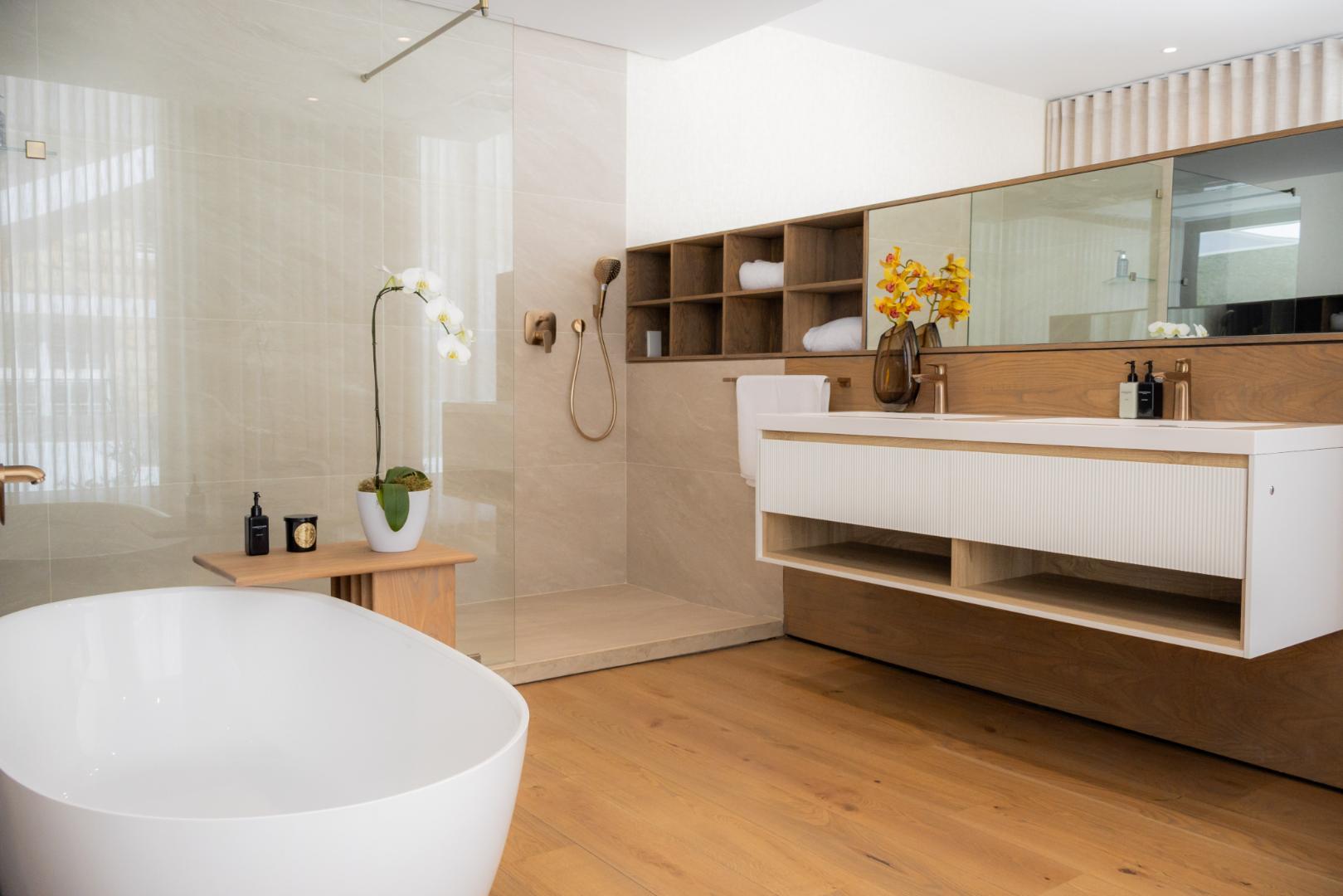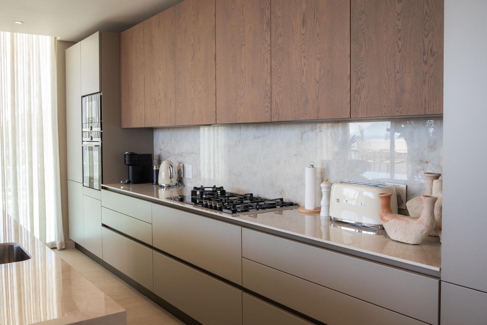 The second level unfolds into an open-plan kitchen equipped with high-end appliances and a convenient scullery complete with washing and drying machines. This level also features a dining area, a lounge, and the primary bedroom with an en-suite bathroom and dressing room—all offering stunning ocean views. Experience breathtaking vistas from numerous vantage points within the property, allowing you to immerse yourself in the serene beauty of the coastline every day.