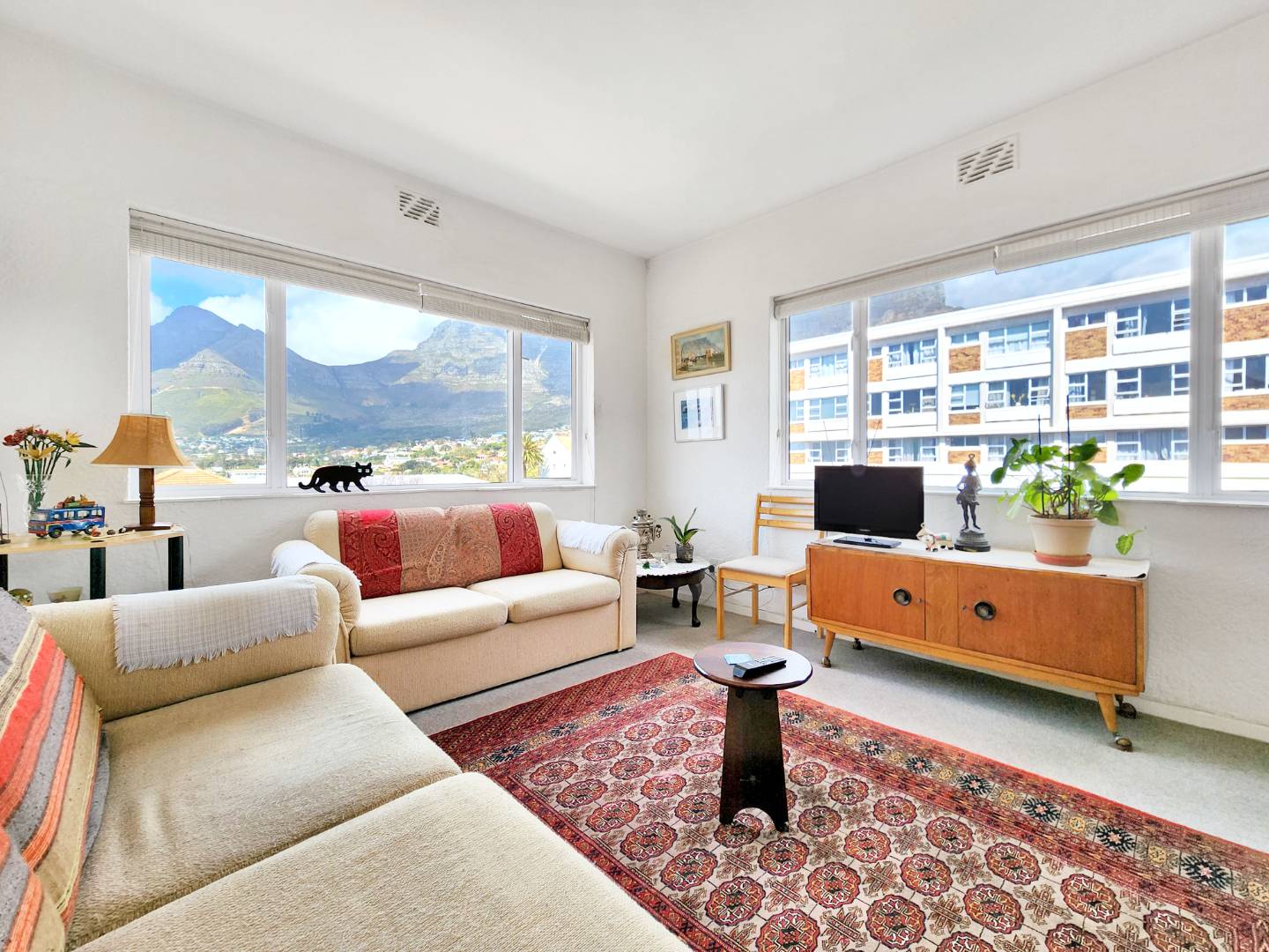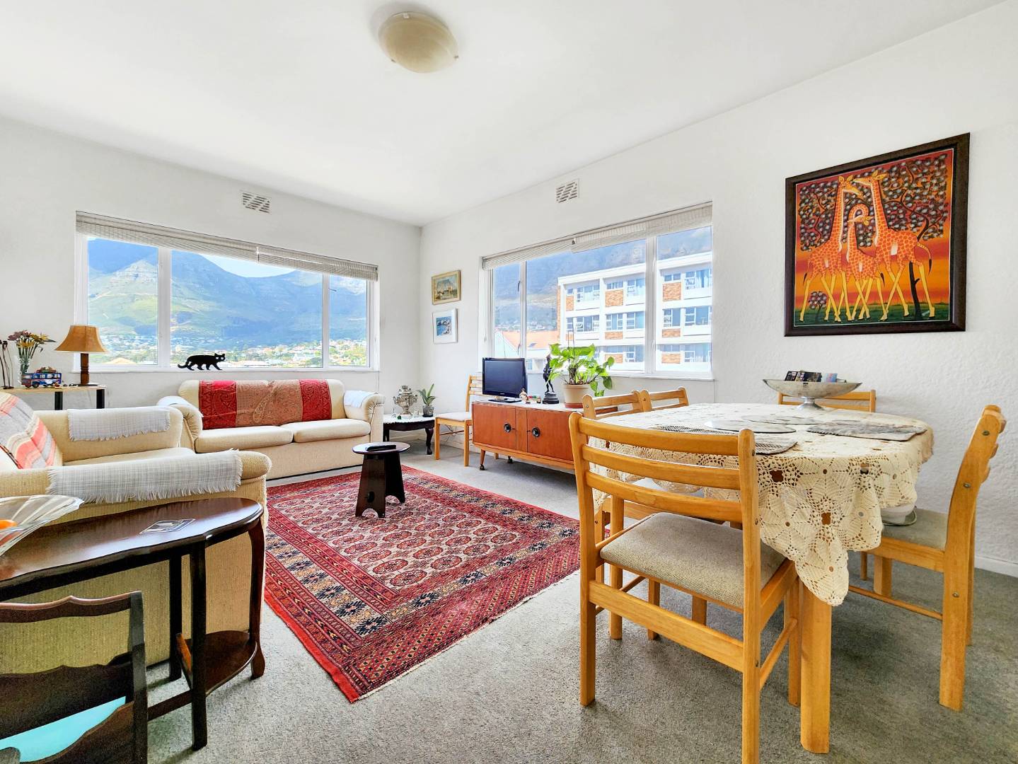 The apartment offering a perfect blend of comfort and breathtaking views. This spacious living area seamlessly flows onto a large balcony, providing stunning vistas of the iconic Table Mountain. Whether you’re relaxing indoors or enjoying the fresh air outside, the natural beauty of your surroundings will captivate you.
