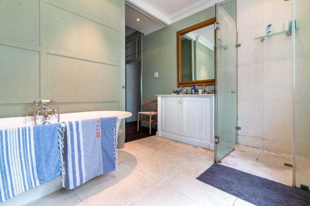 Originally a two bedroom apartment, it was reconfigured for specific needs, so as it stands, it is a large one bedroom apartment, with 2 full bathrooms, a lounge area (with en suite bathroom), a large walk in closet, and a kitchen and scullery that leads to an outside space