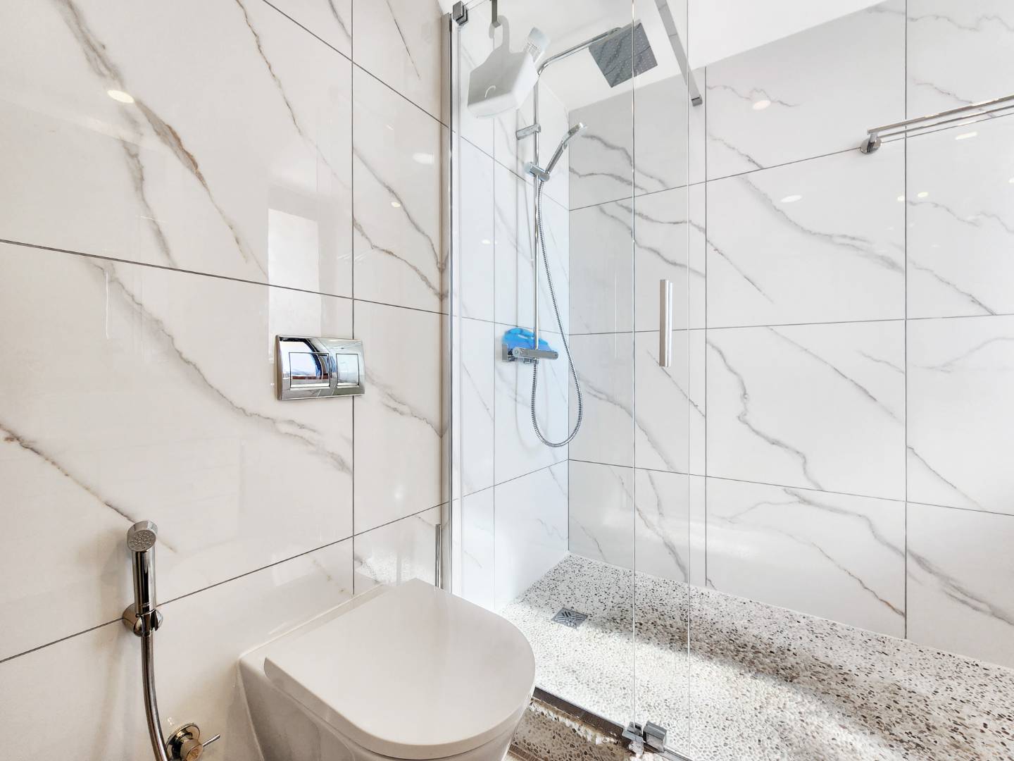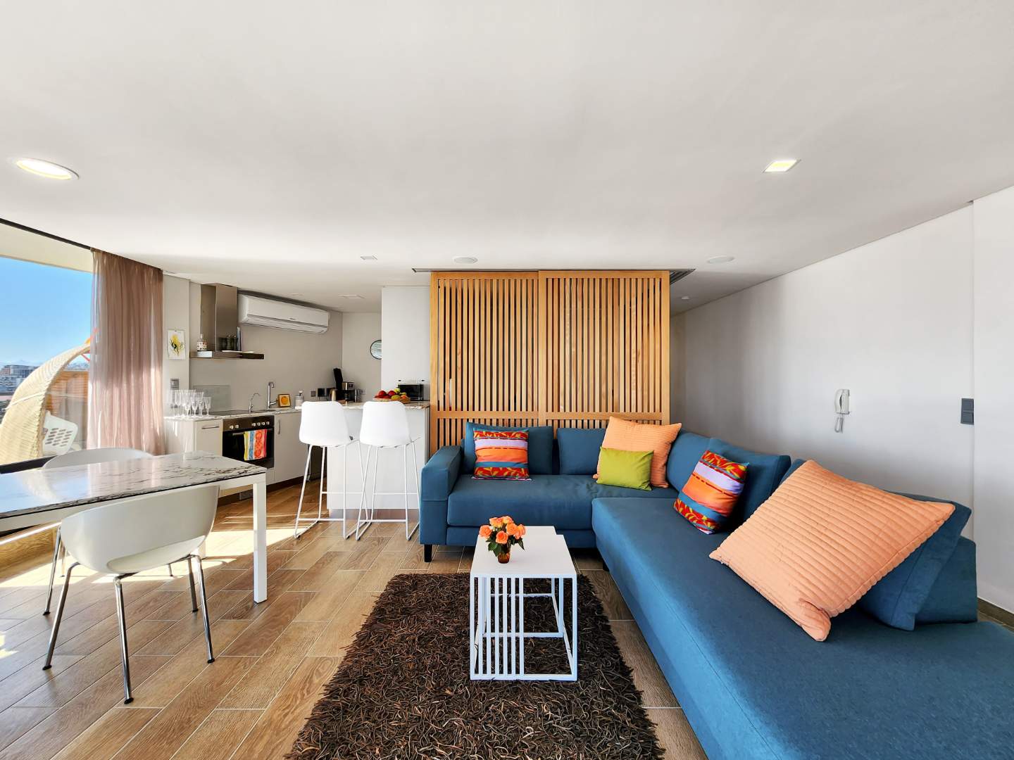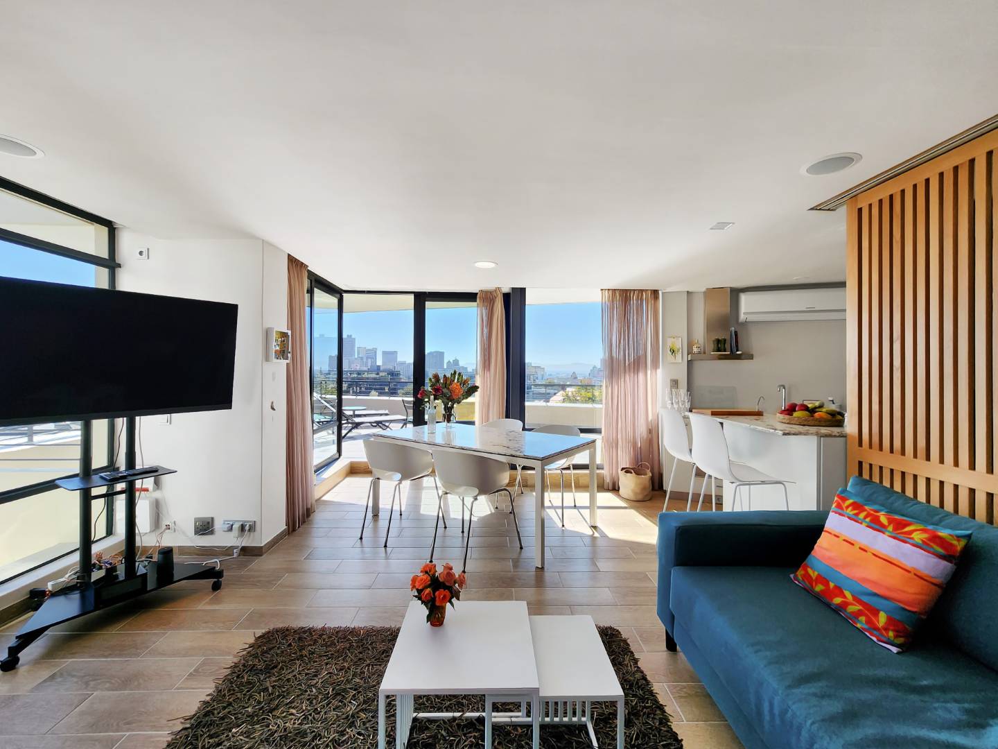 The living area opens up to a spacious terrace with magnificent views of the city and mountains. The main bedroom leads out to a second terrace. A study that can turn into a guest bedroom.