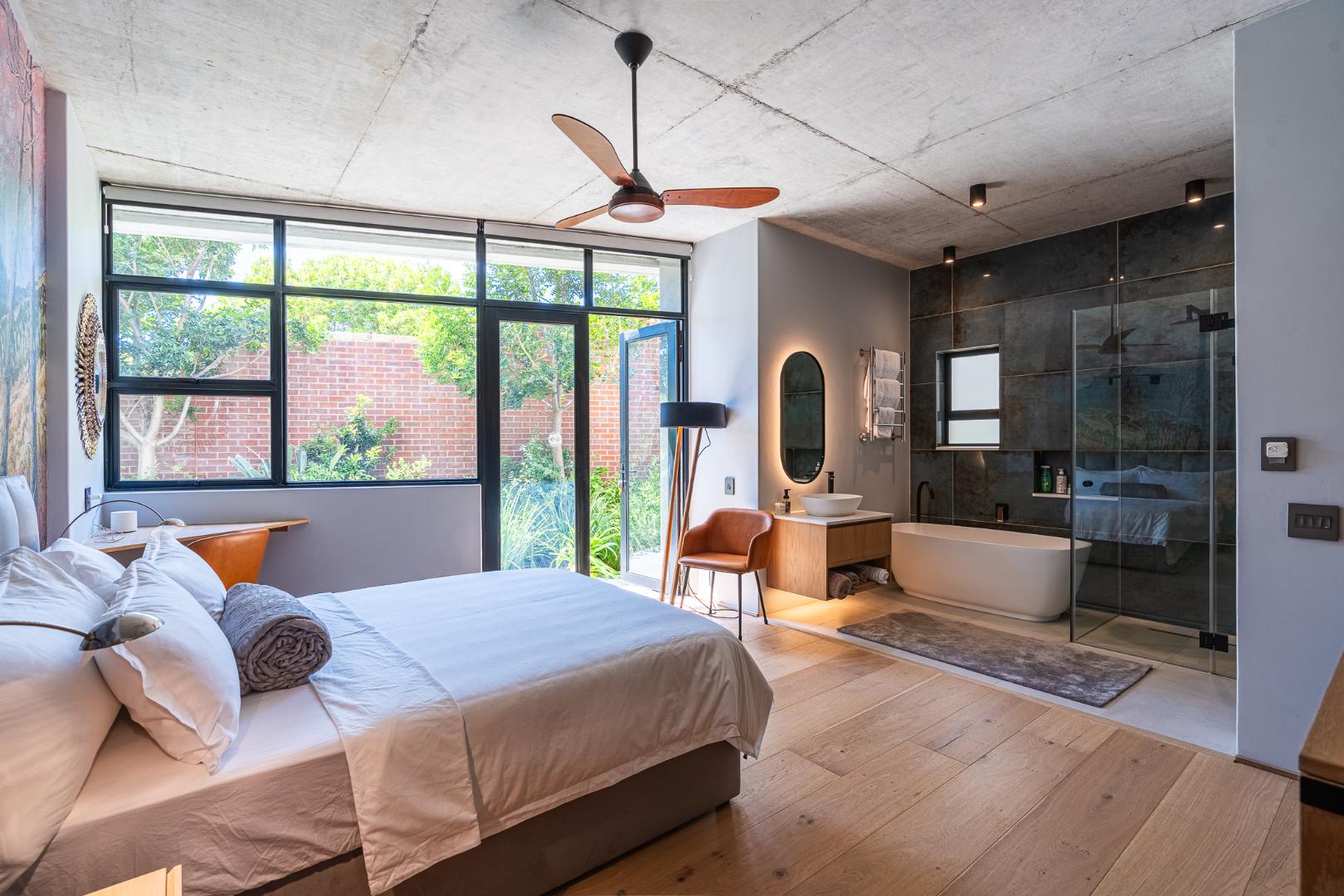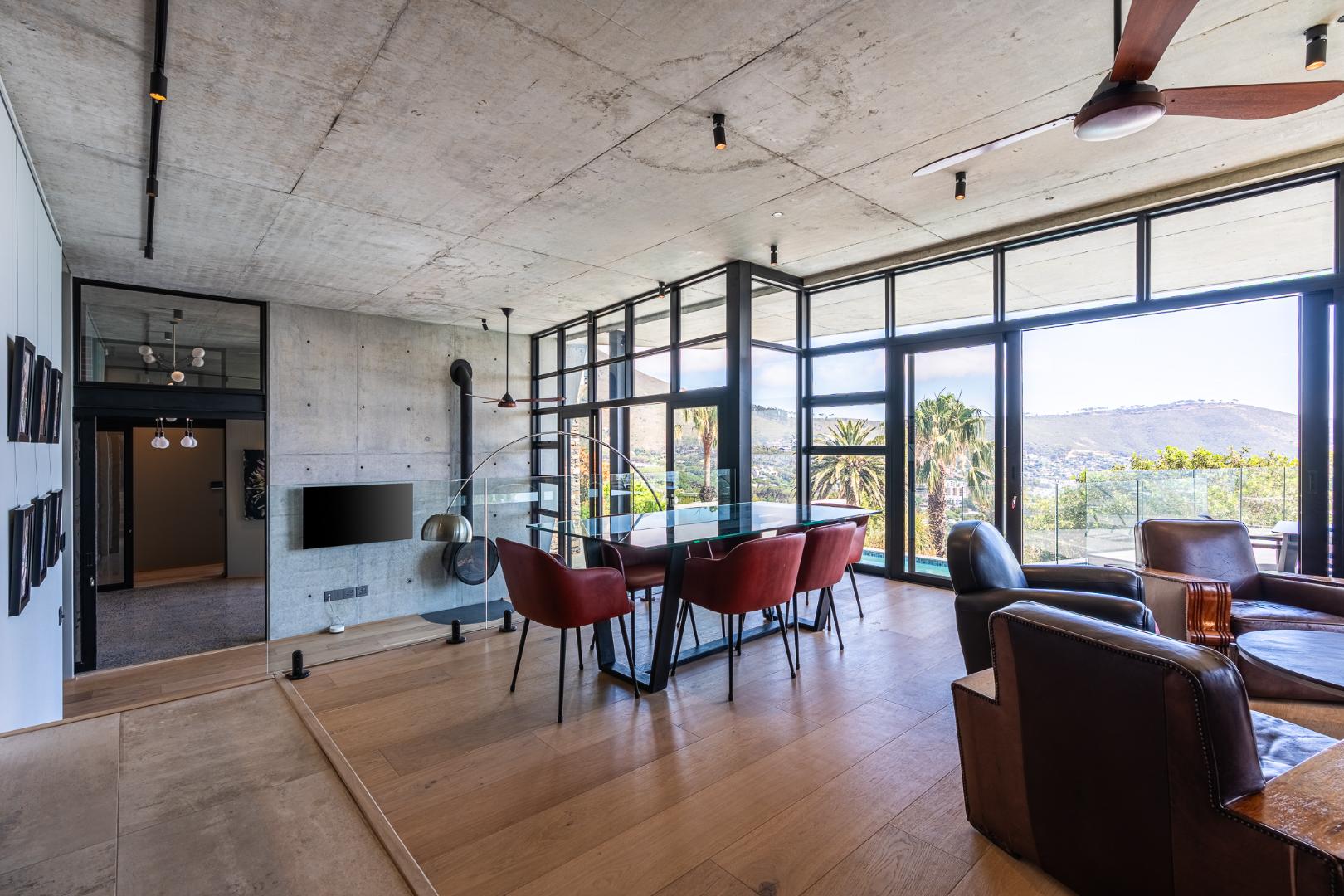 Welcome to an exceptional luxury residence in Higgovale, where the exclusivity of this generous private home meets the effortless convenience of a lock-up-and-go apartment. Commanding exceptional views over Cape Town’s cityscape, harbour lights, and Table Mountain’s dramatic slopes, this expansive lower-level residence occupies the entire bottom floor of a modern, architect-designed property.