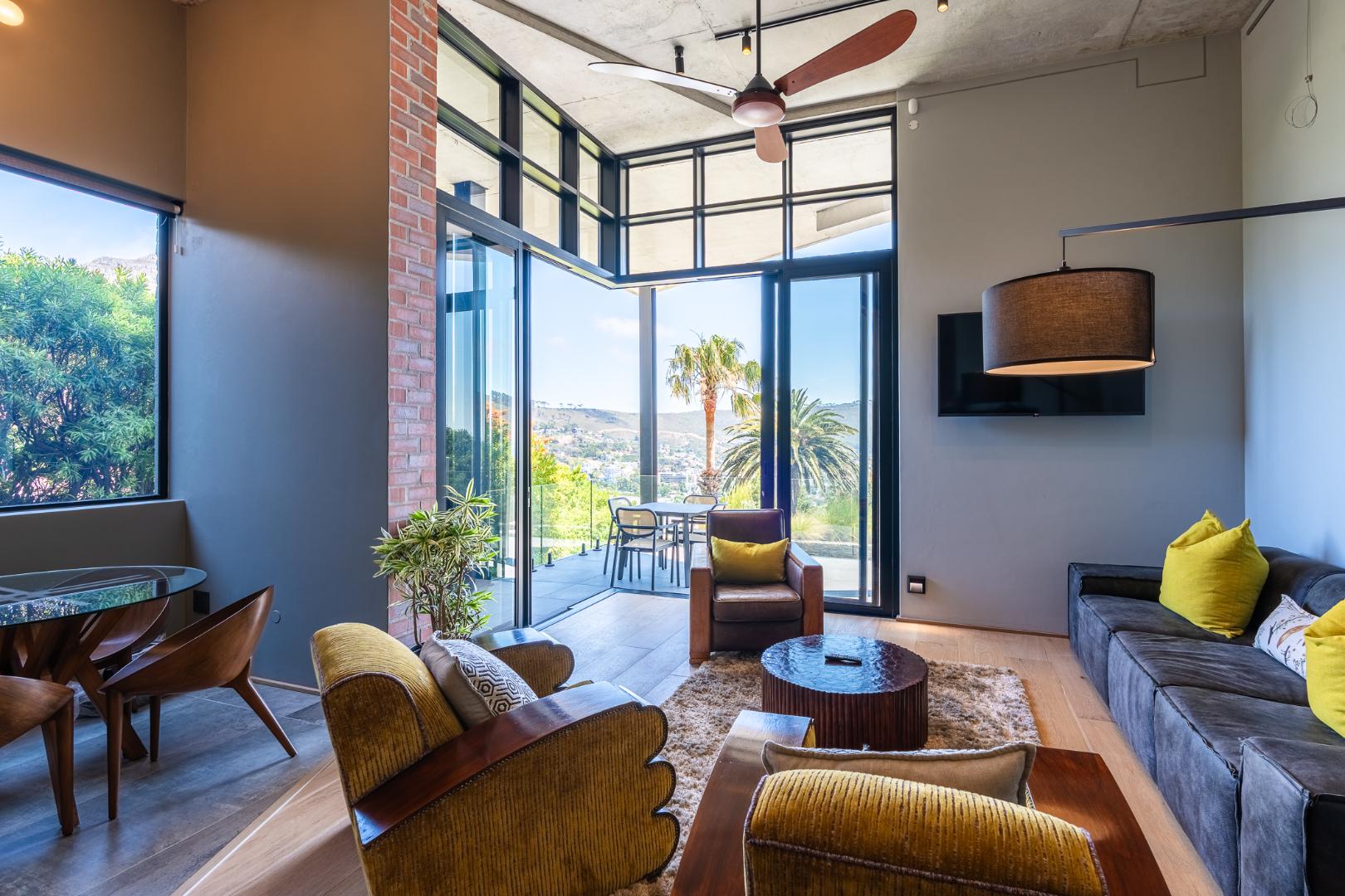 You'll love the effortless convenience of this lock-up-and-go apartment. Commanding exceptional views over Cape Town’s cityscape, harbour lights, and Table Mountain’s dramatic slopes, this expansive lower-level residence occupies the bottom floor of a modern, architect-designed property.