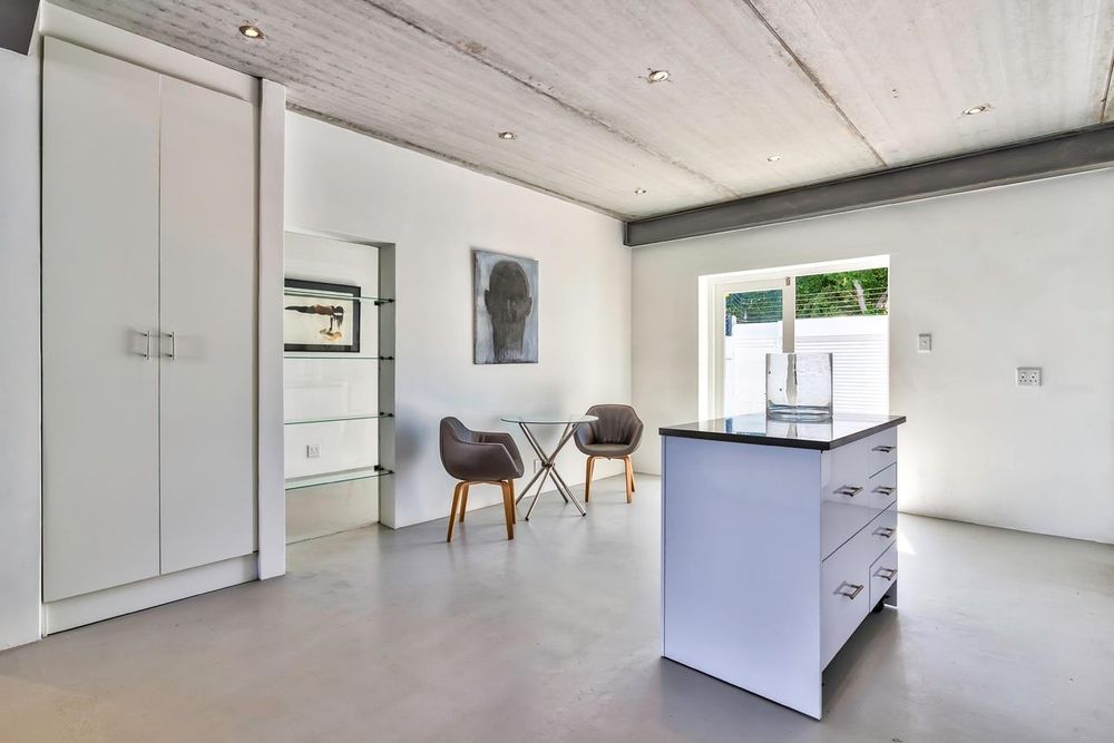 To the rear lies the home’s most flexible and exciting space. With its own shower room, this open-plan area can serve as your fourth bedroom, a luxurious guest suite, or a dramatic TV lounge. Floor-to-ceiling windows frame magnificent city skyline views, while doors lead out to a generous, sun-soaked patio with built-in seating and breathtaking views of Table Mountain.